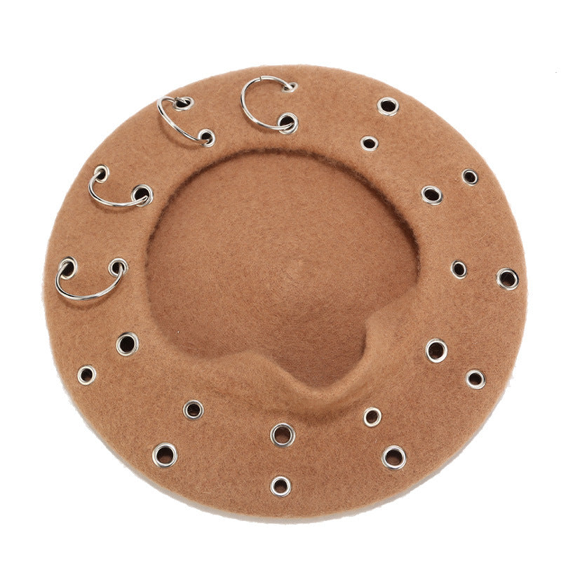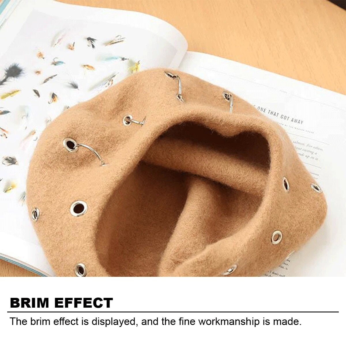 Khaki Unisex Beanie Lady Wool French Beret Hat Cap Winter Warm Iron Ring Design Rock