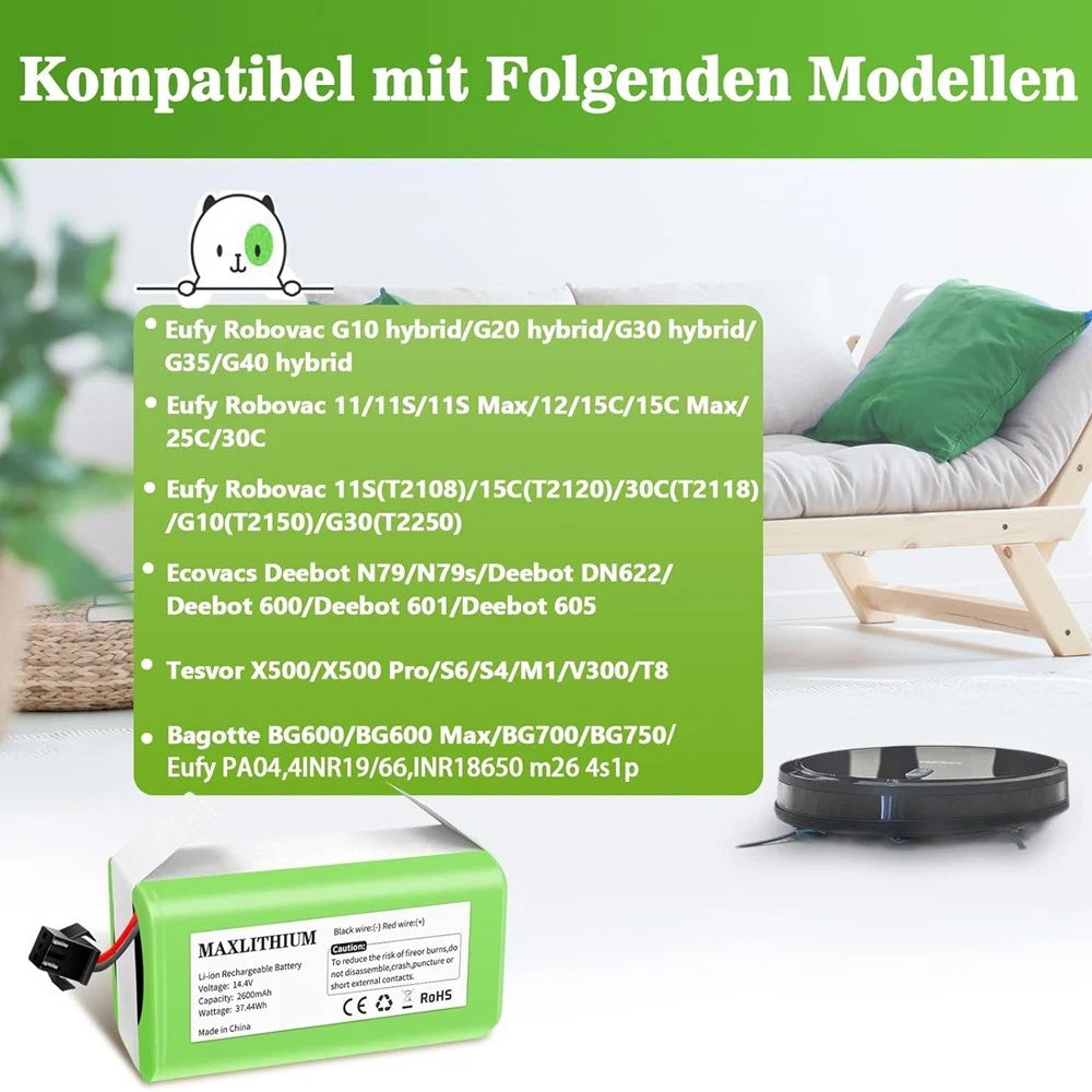 14.4V 2600mAh Replacement for Eufy RoboVac G10 G20 G30 G40 Hybrid Li-Ion Battery
