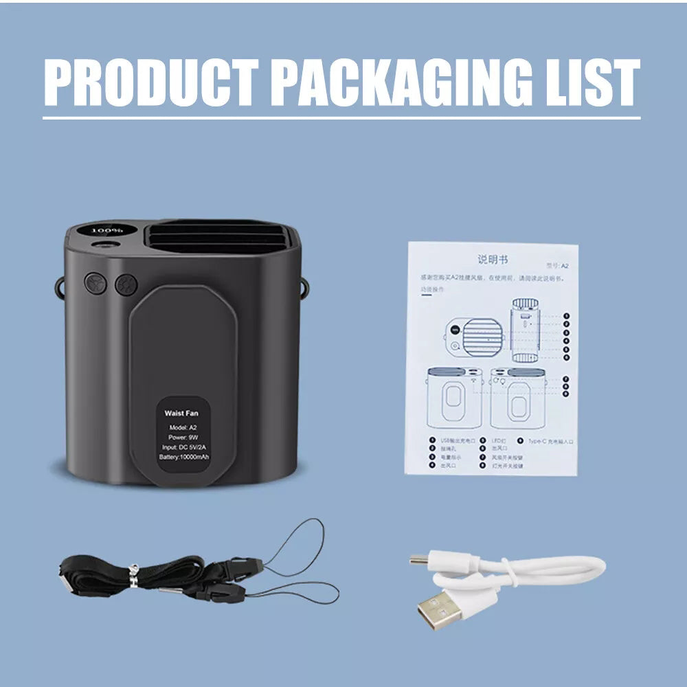3in1 Portable Waist Clip on Fan Hanging Cooling Fan Rechargeable Power Bank Fan