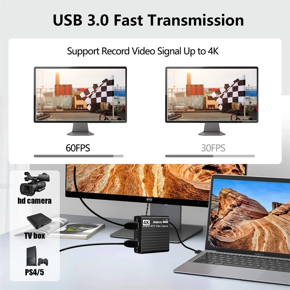4K HDMI Capture Card1080P 60FPS Audio Video For Nintendo Switch/PS5/PS4/Xbox