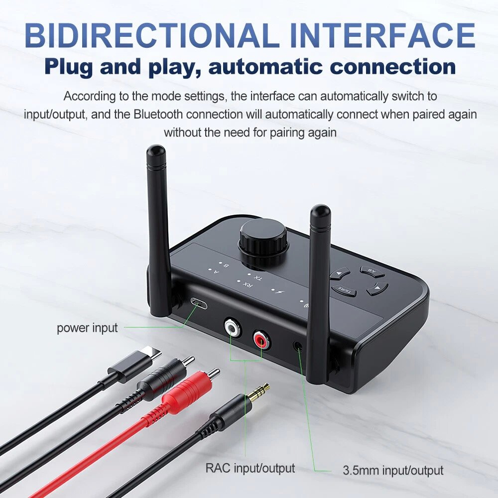 • RX Mode (Receive): Transform an old speaker into a Bluetooth speaker by connecting it to your phone, allowing you to play music wirelessly.