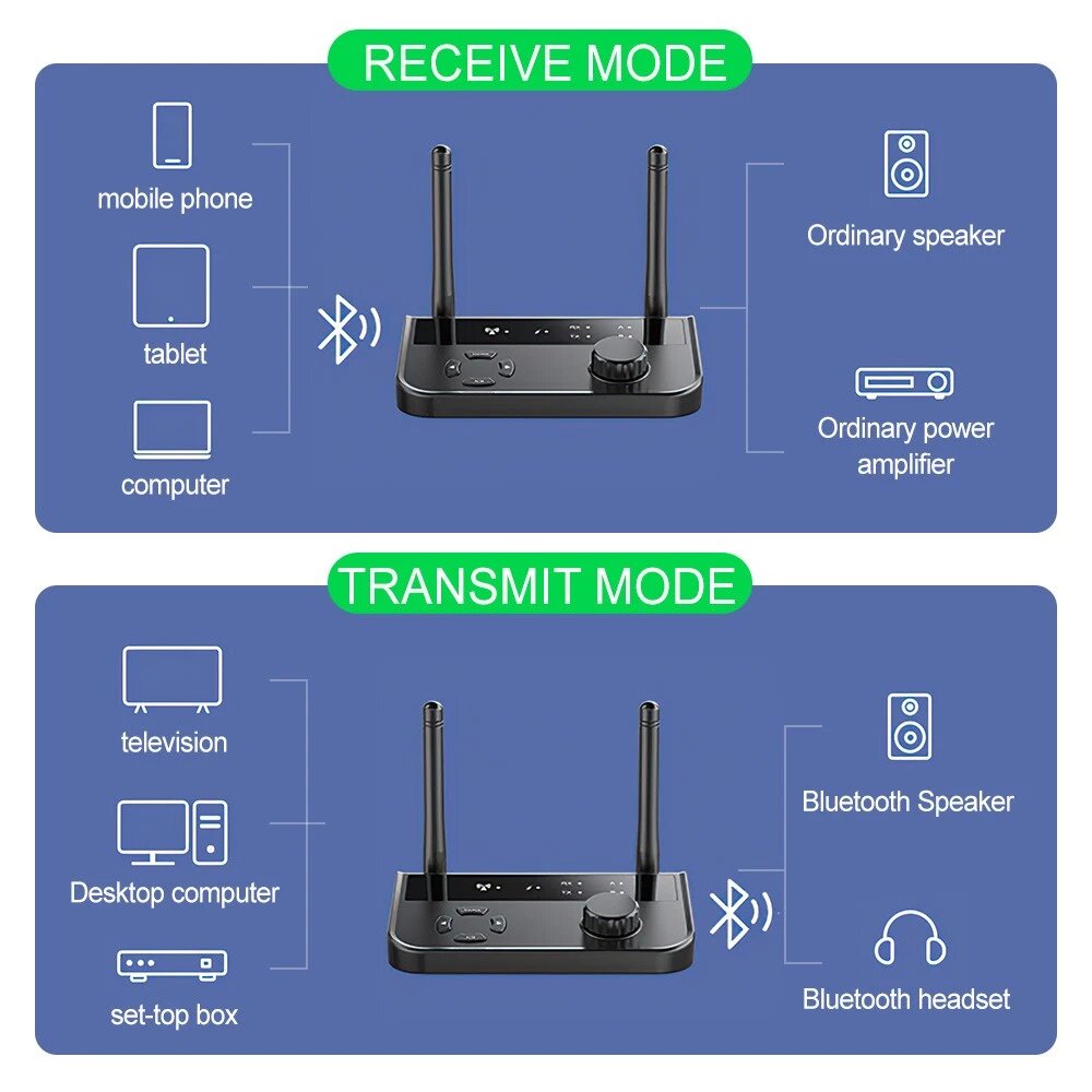 • TX Mode (Transmit): Instantly turn your TV into a Bluetooth transmitter, wirelessly connecting it to Bluetooth headsets for private listening. Perfect for late-night movie marathons!