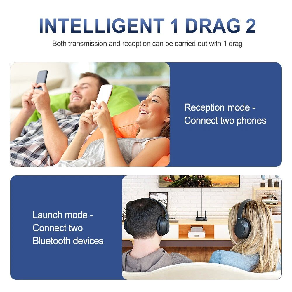 • Intelligent One-to-Two Mode: Share the fun with a one-to-two setup, allowing you to transmit or receive audio to two devices simultaneously.