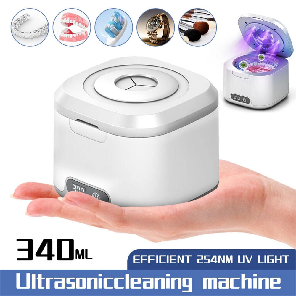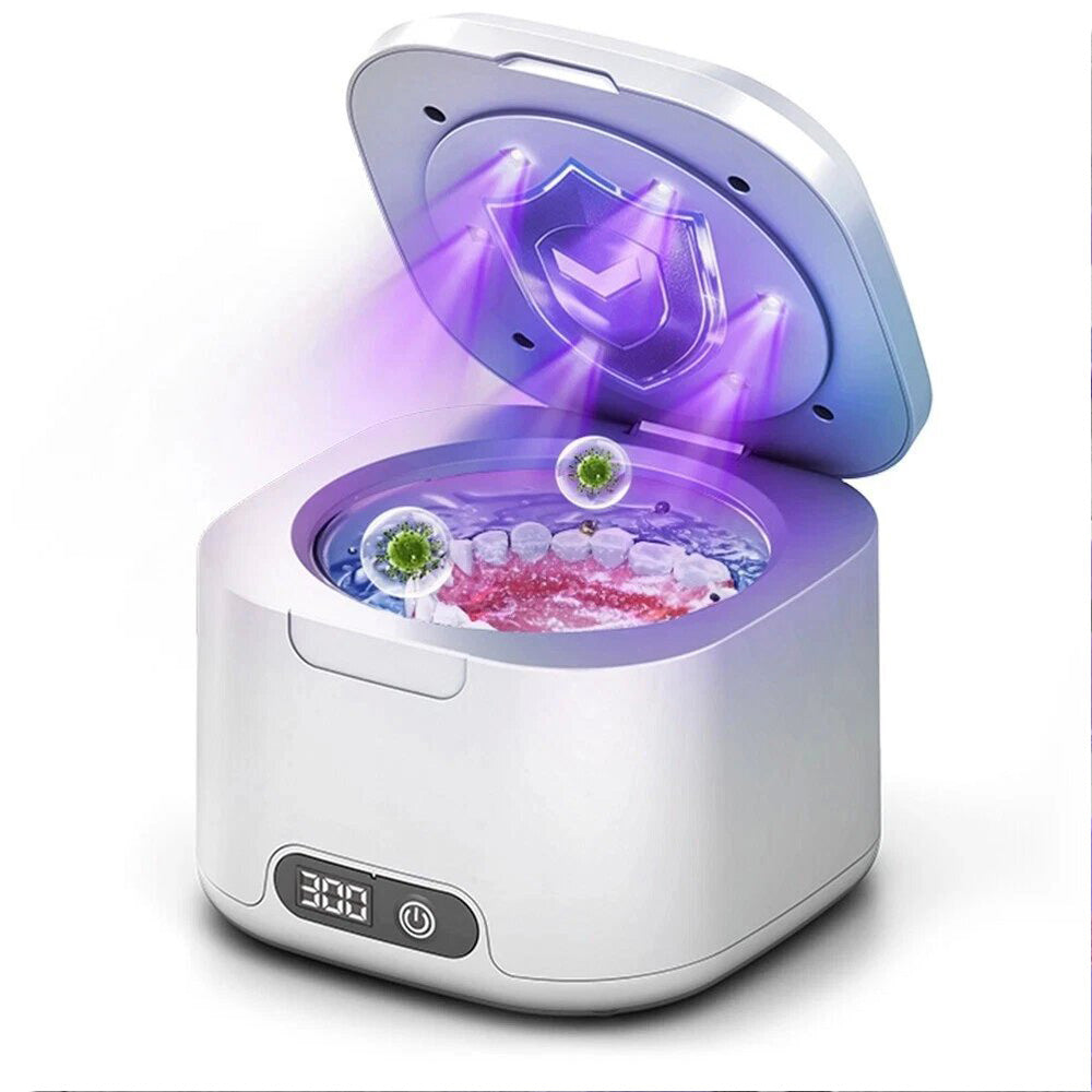Keep your dental appliances spotless and fresh with the Ultrasonic Retainer Cleaner. Featuring 49KHz high-frequency sound waves and 254nm UV light, this cleaner effectively removes dirt, stains, and odors from dentures, retainers, mouth guards, night guards, jewelry, and more—without damaging delicate items. With four cleaning modes, a generous 340ML capacity, and a user-friendly design, this cleaner ensures a thorough and hassle-free cleaning experience, promoting healthier oral hygiene routines.