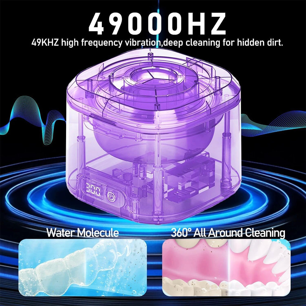 - 360° Ultrasonic Cleaning: The ultrasonic cleaner uses 49KHz high-frequency sound waves to deeply clean all areas, even hard-to-reach crevices and grooves, ensuring thorough removal of dirt and particulates from your dental appliances and jewelry.