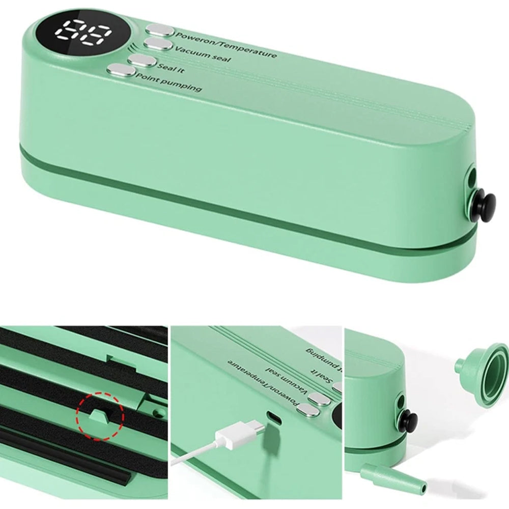 Mini Cordless Vacuum Sealer Wireless 60kpa Food Sealer for Kitchen Meat Nuts (Green)