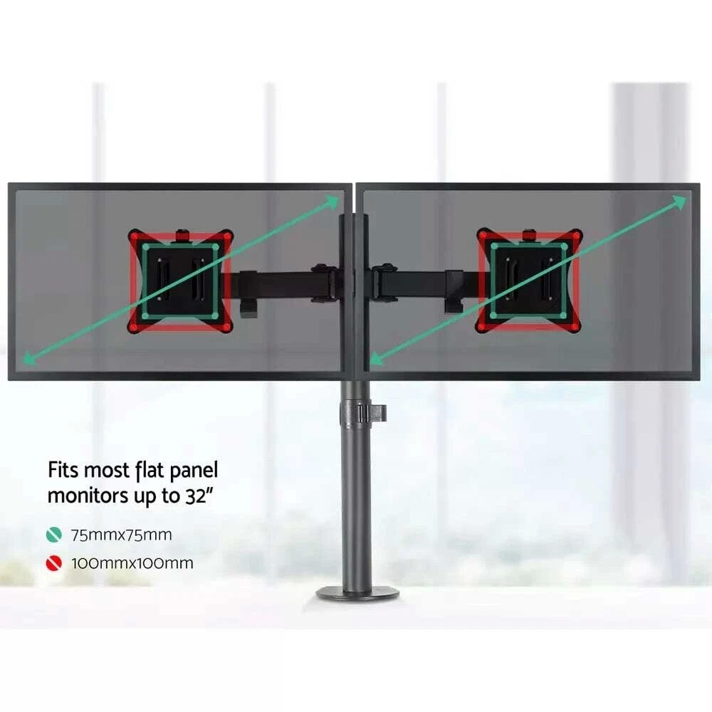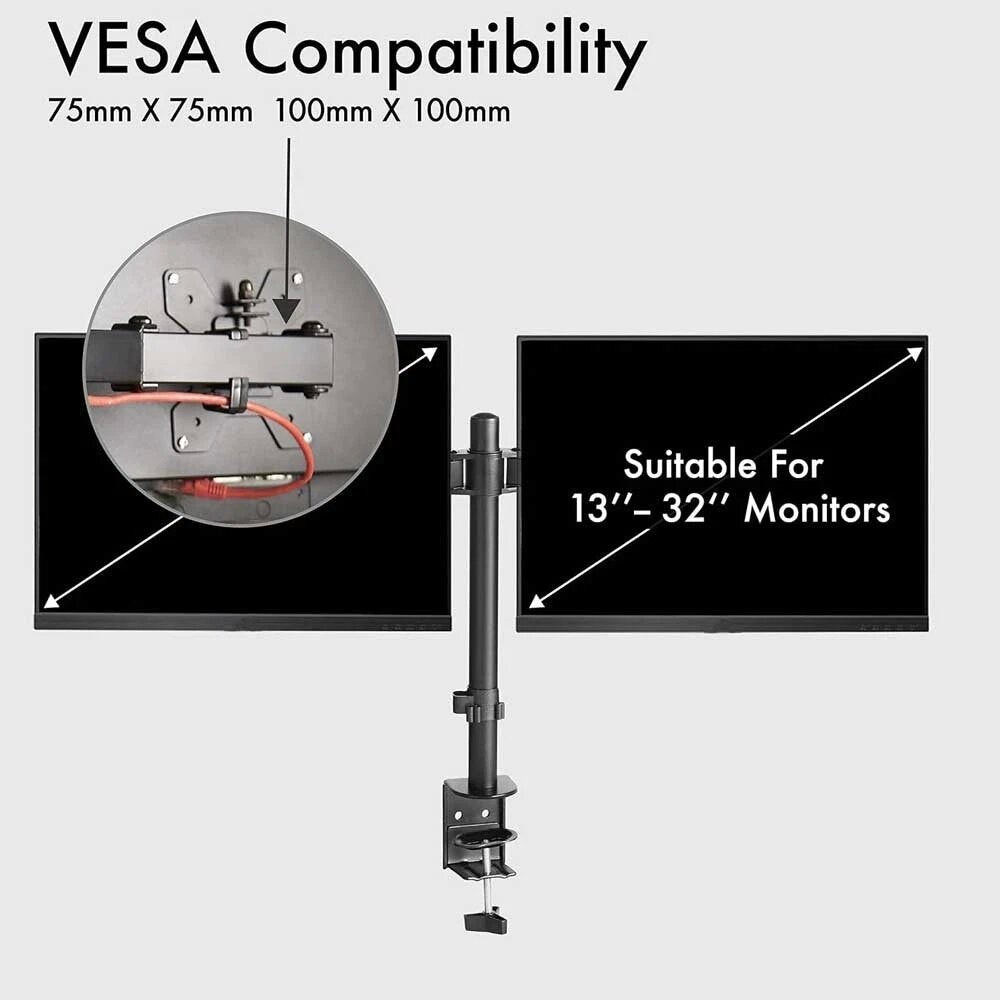 - High Compatibility: Fits most monitors up to 32 inches and 8kg per arm, supporting VESA 75x75mm and 100x100mm standards.