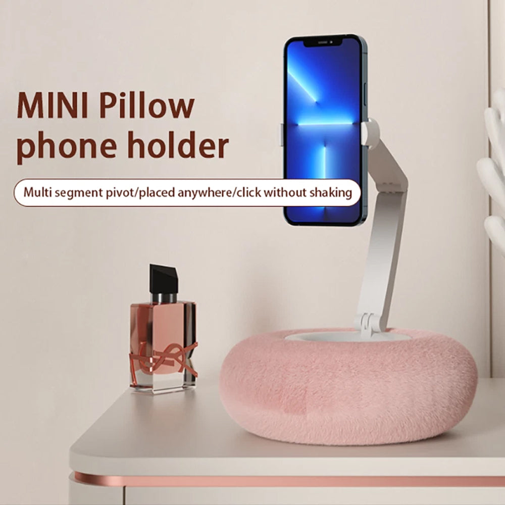 Tablet Stand Pillow 360°Adjustable Cell Phone Holder for Bed Soft Plush Fabric (Pink)