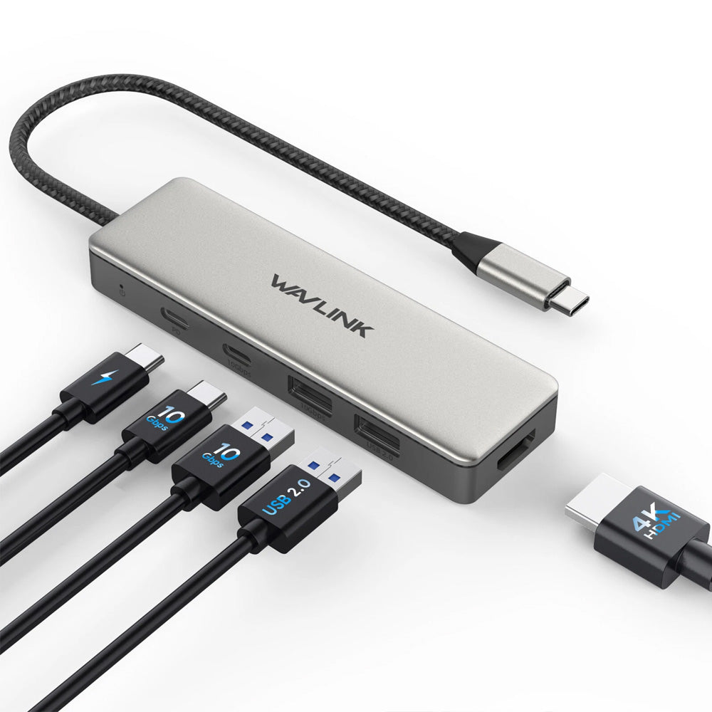 5-in-1 Multiport Hub – Features 4K HDMI, 125W Power Delivery, 2 USB 3.1 10Gbps ports, and 1 USB A 2.0 port, offering versatile connectivity.