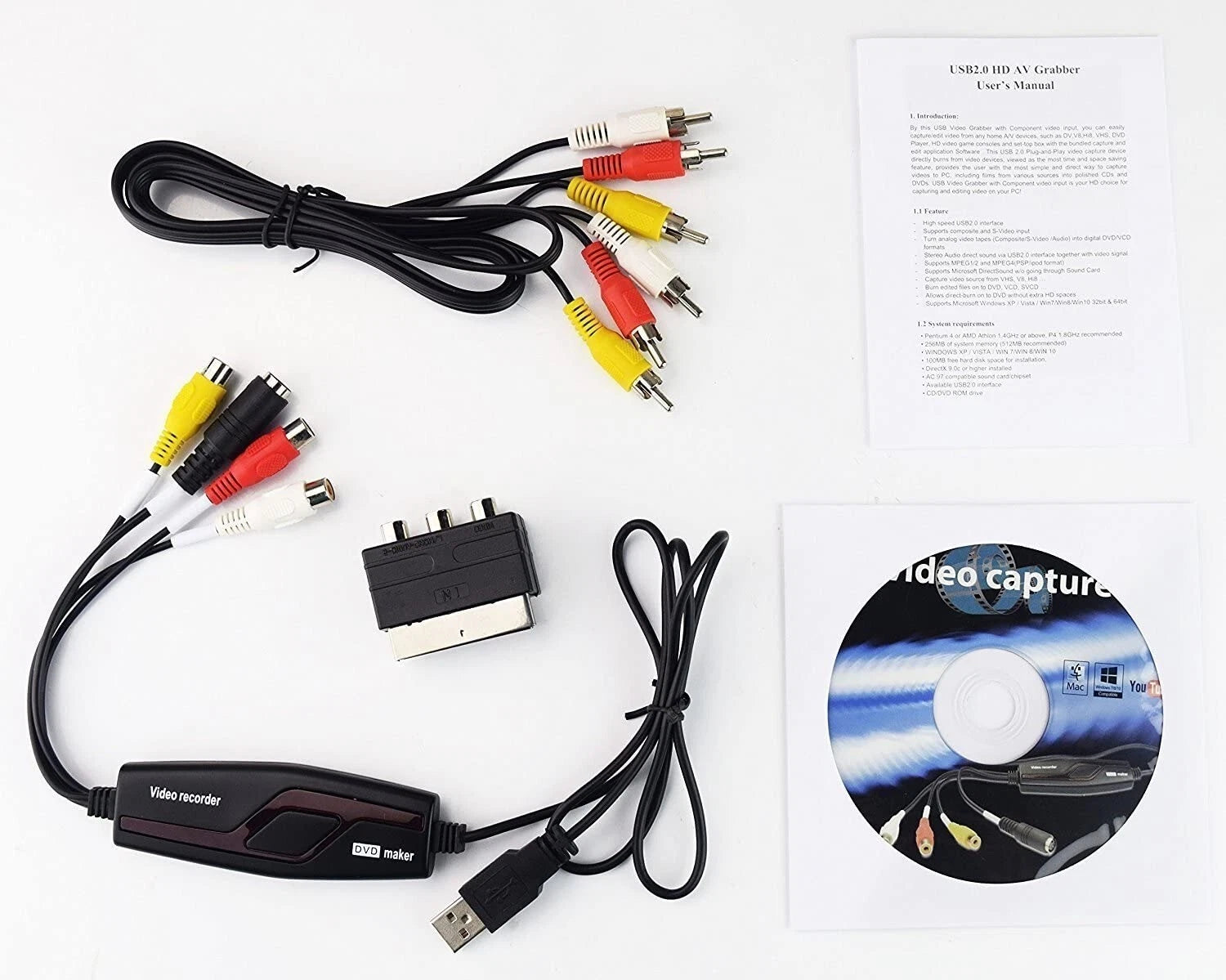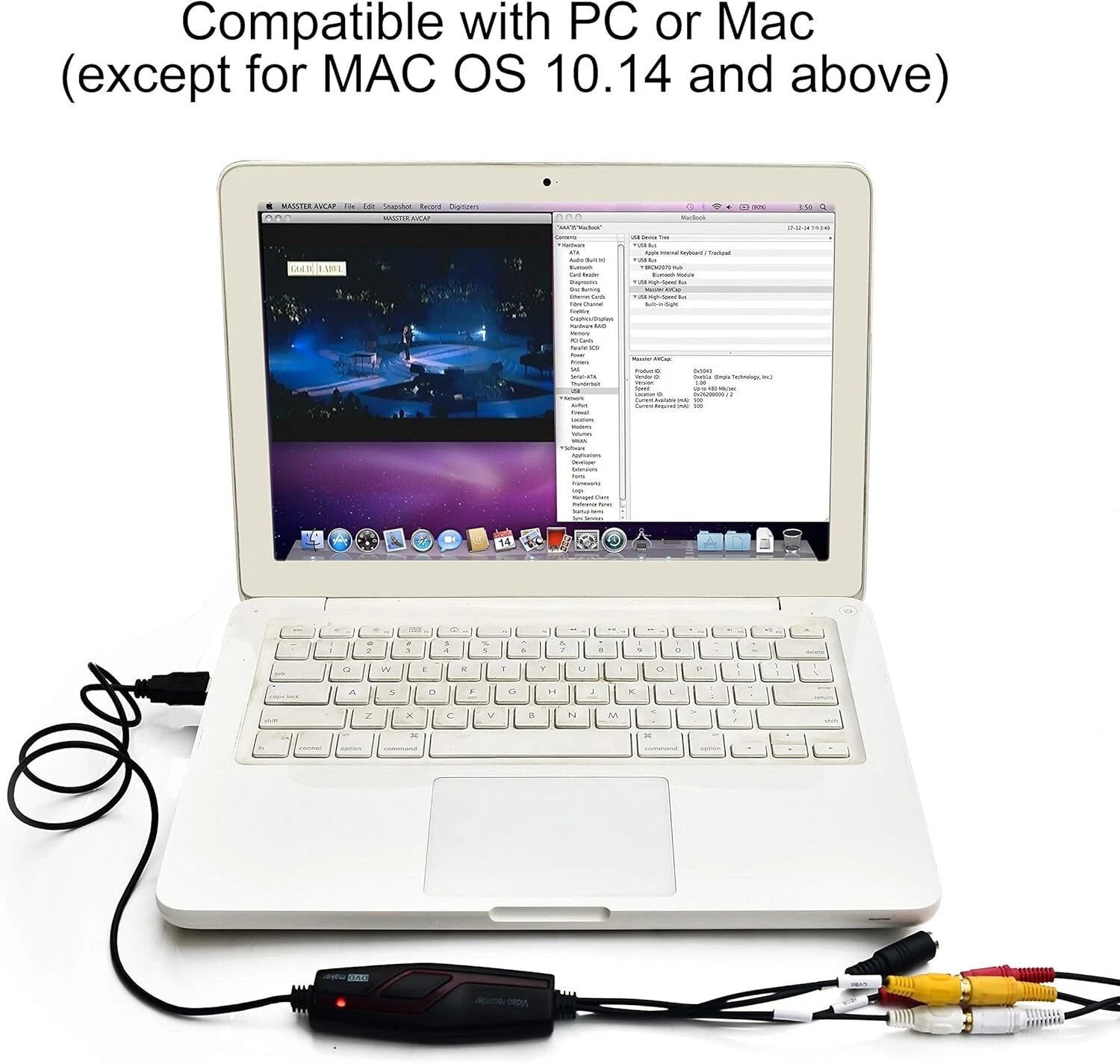 Video Grabber Capture Card Hi8 VCR VHS to Digital DVD Converter, Windows 10 Mac