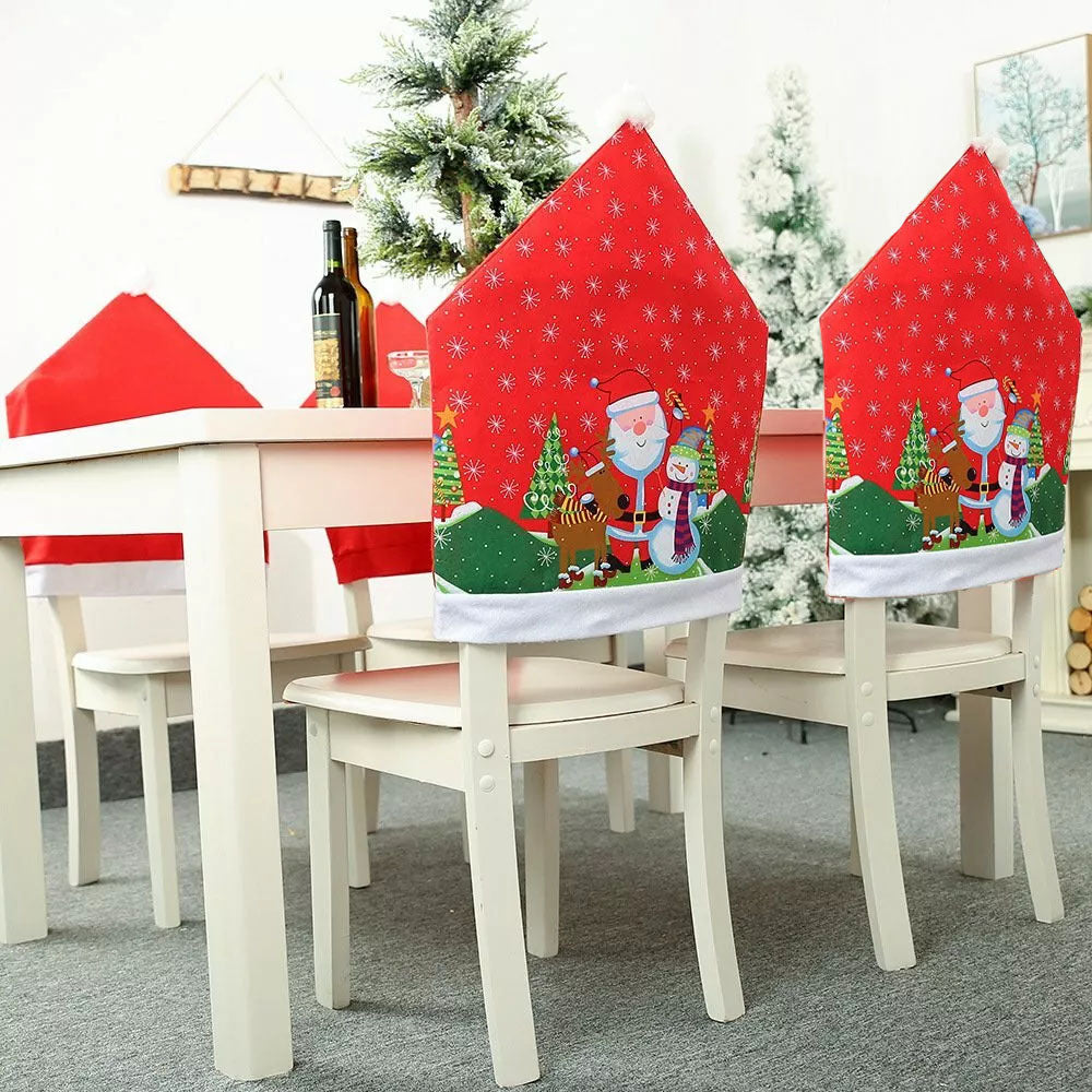 10x Christmas Chair Covers Dinner Table Santa Hat Snowman Home Décor Ornaments Santa