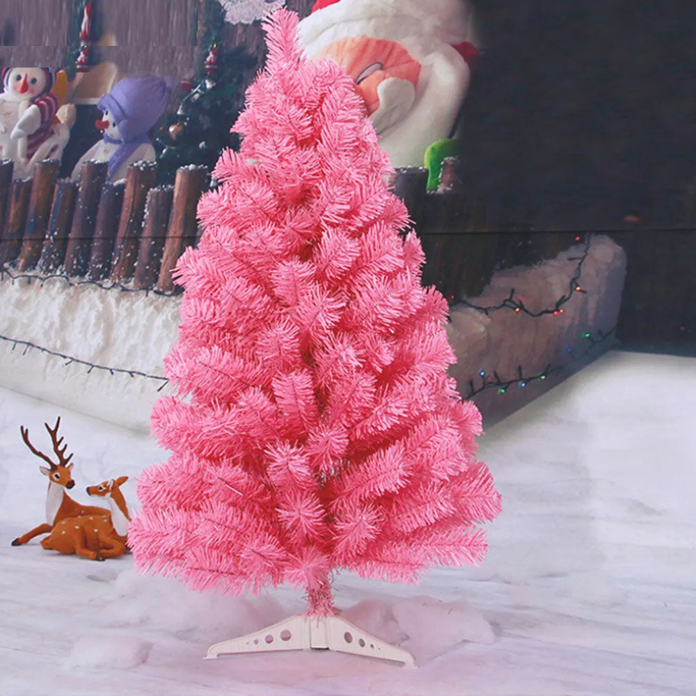 2ft/60CM Mini Pink Christmas Tree Home Office Xmas Table Decoration 80 Tips