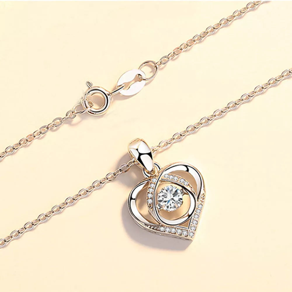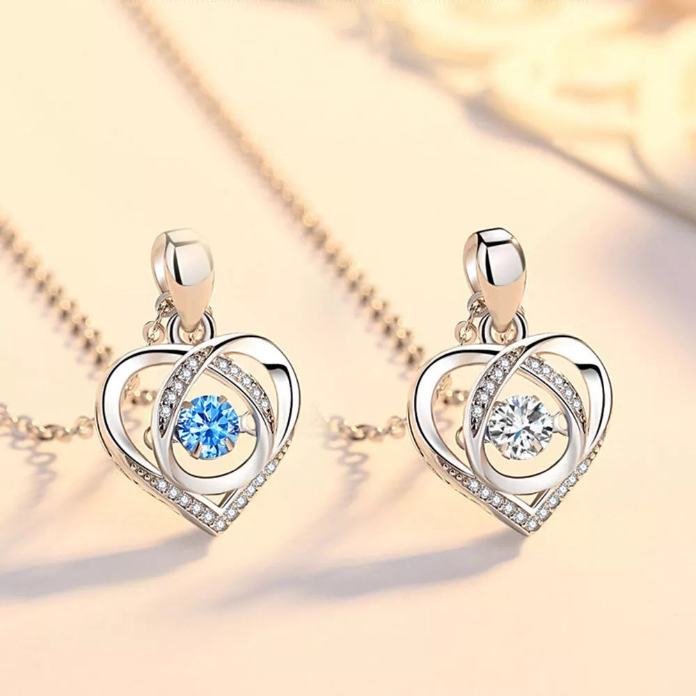 Crystal Silver Love Heart Necklace Chain Pendant Women Jewelry