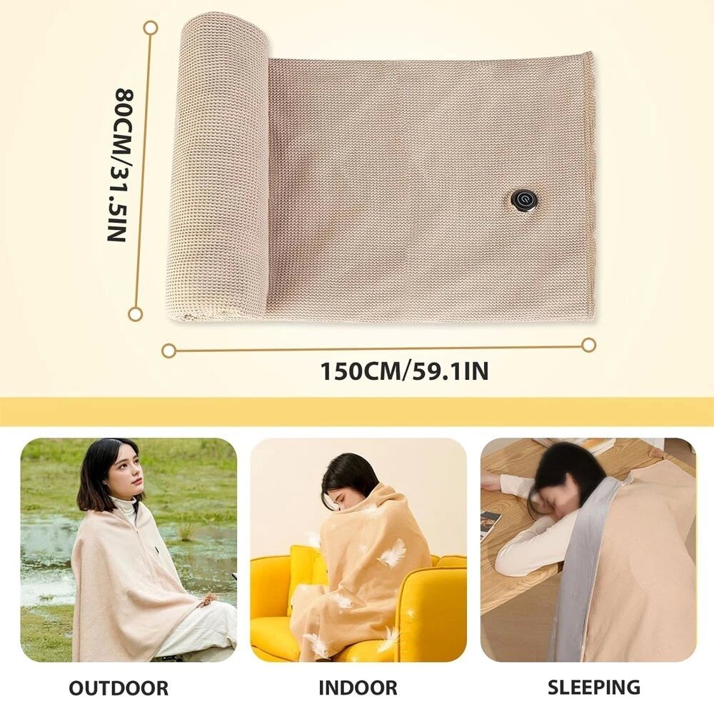 Stay warm and cozy no matter where you are with this cutting-edge heated blanket. Powered by upgraded graphene heating technology, it boasts 8 built-in heating zones that distribute warmth evenly in just 10 minutes, plus 3 adjustable temperature settings (45-60°C) to tailor comfort to your needs. A key difference: Unlike traditional plug-in heating blankets, this design relies on a portable power source, ensuring gentle yet noticeable warmth when worn.