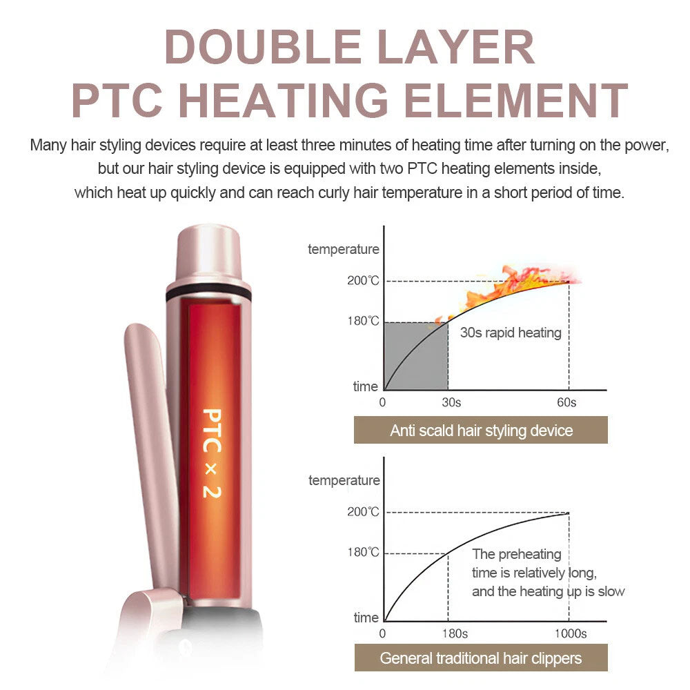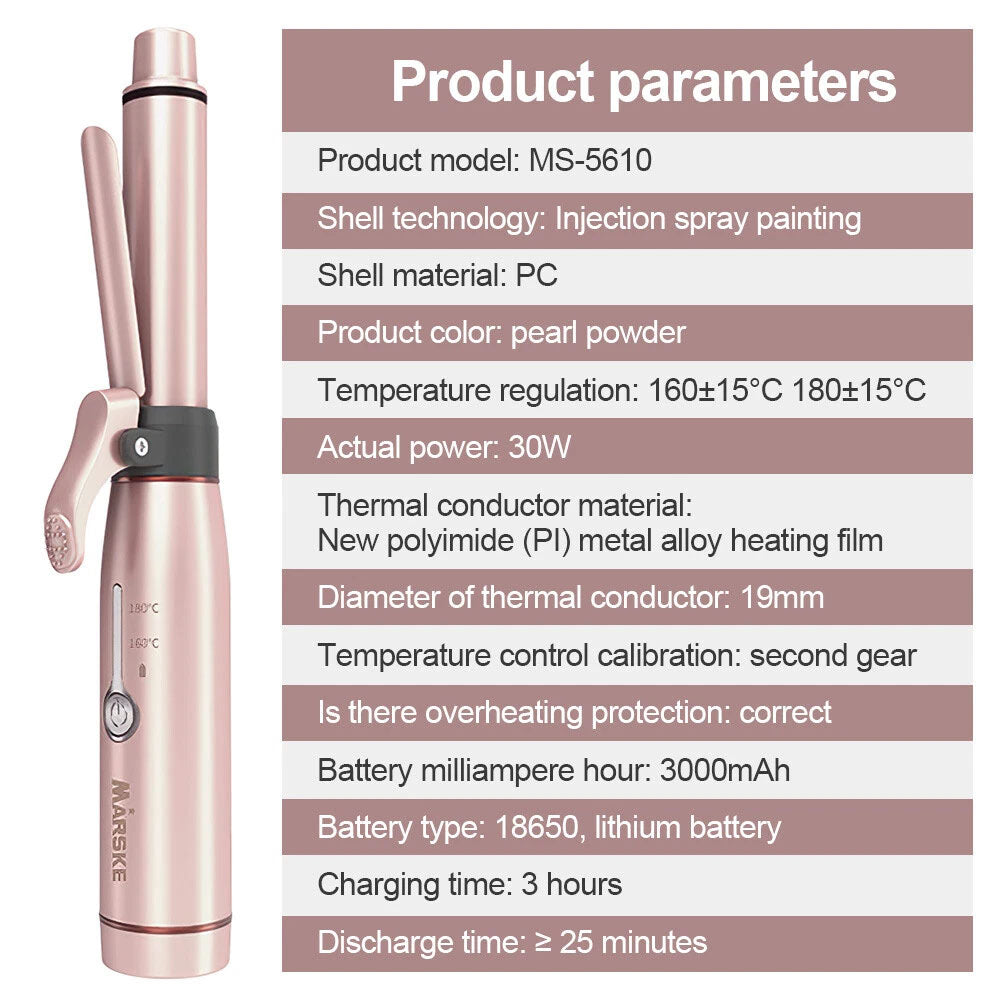 Portable Curling Wand, Mini Cordless Curling Iron USB Rechargeable Ceramic Hair