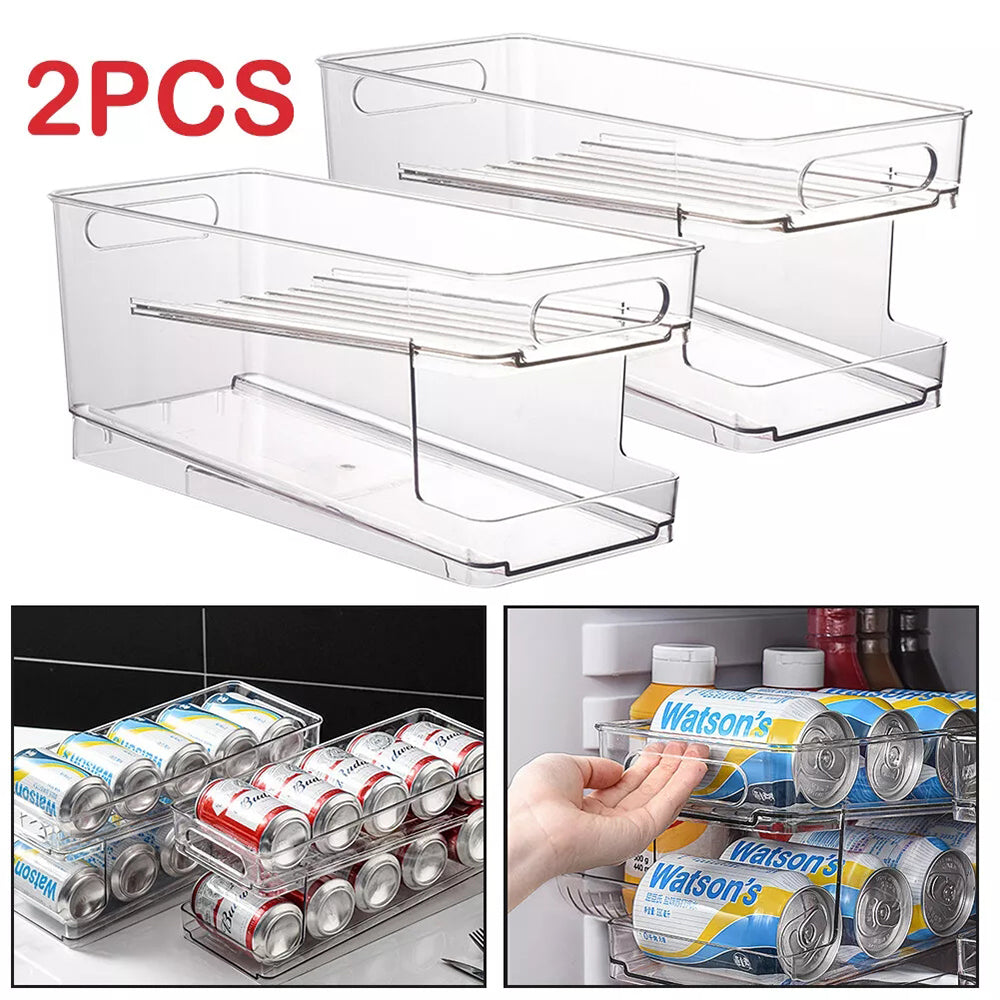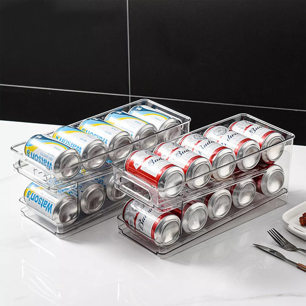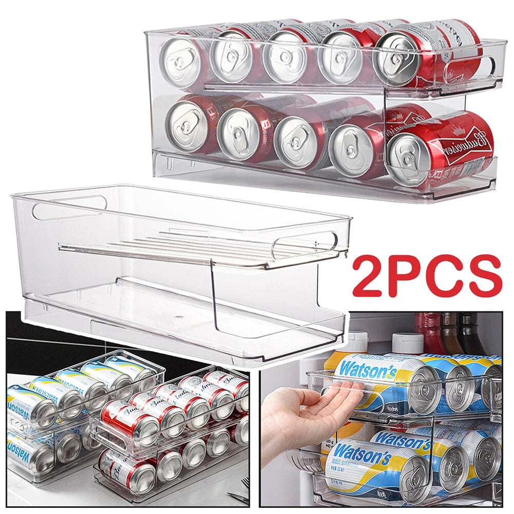 Keep your kitchen and refrigerator neatly organized with our 2-Pack Beverage Holder. Designed to maximize storage space, this can rack is perfect for refrigerators, freezers, cabinets, pantries, or countertops. Its smart rolling design ensures that as you take one can, the next one rolls into place automatically, making it both convenient and space-saving. A must-have organizer for keeping your drinks tidy and easily accessible.