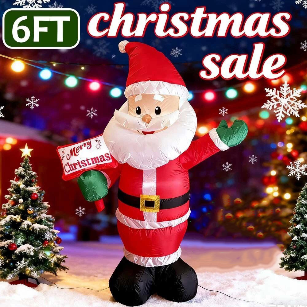 - 1 x 6 Foot LED Light Up Giant Christmas Inflatable Santa (with "Merry Christmas" Banner)