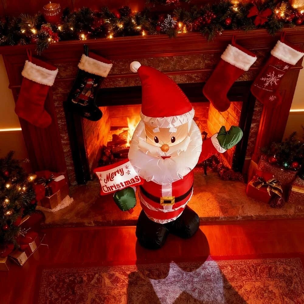 Get ready to elevate your Christmas decor to a whole new level with this spectacular LED Light Up Giant Christmas Inflatable Santa! Standing tall at 6 feet, this charming Santa figure is the perfect centerpiece to spread holiday cheer throughout your home and yard. He proudly holds a "Merry Christmas" banner, instantly adding a classic, festive touch to any space. Designed for both indoor and outdoor use, this inflatable Santa is ideal for decorating your yard, garden, living room, or even for enhancing the atmosphere at Christmas events, night gatherings, parties, or classroom spaces. When the sun sets, the built-in LED swirling lights illuminate, creating a magical glow that will catch the eyes of neighbors, guests, and passersby—making your home the highlight of the neighborhood this holiday season. Crafted with higher quality materials, this deluxe set ensures durability and long-lasting use, so you can enjoy the festive spirit year after year.