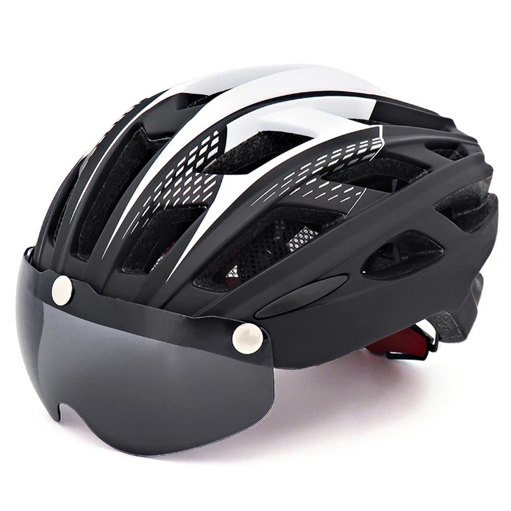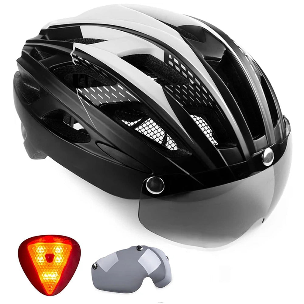 Bike Helmet for Men Women w/ Detachable Goggles Led Back Light Black and white