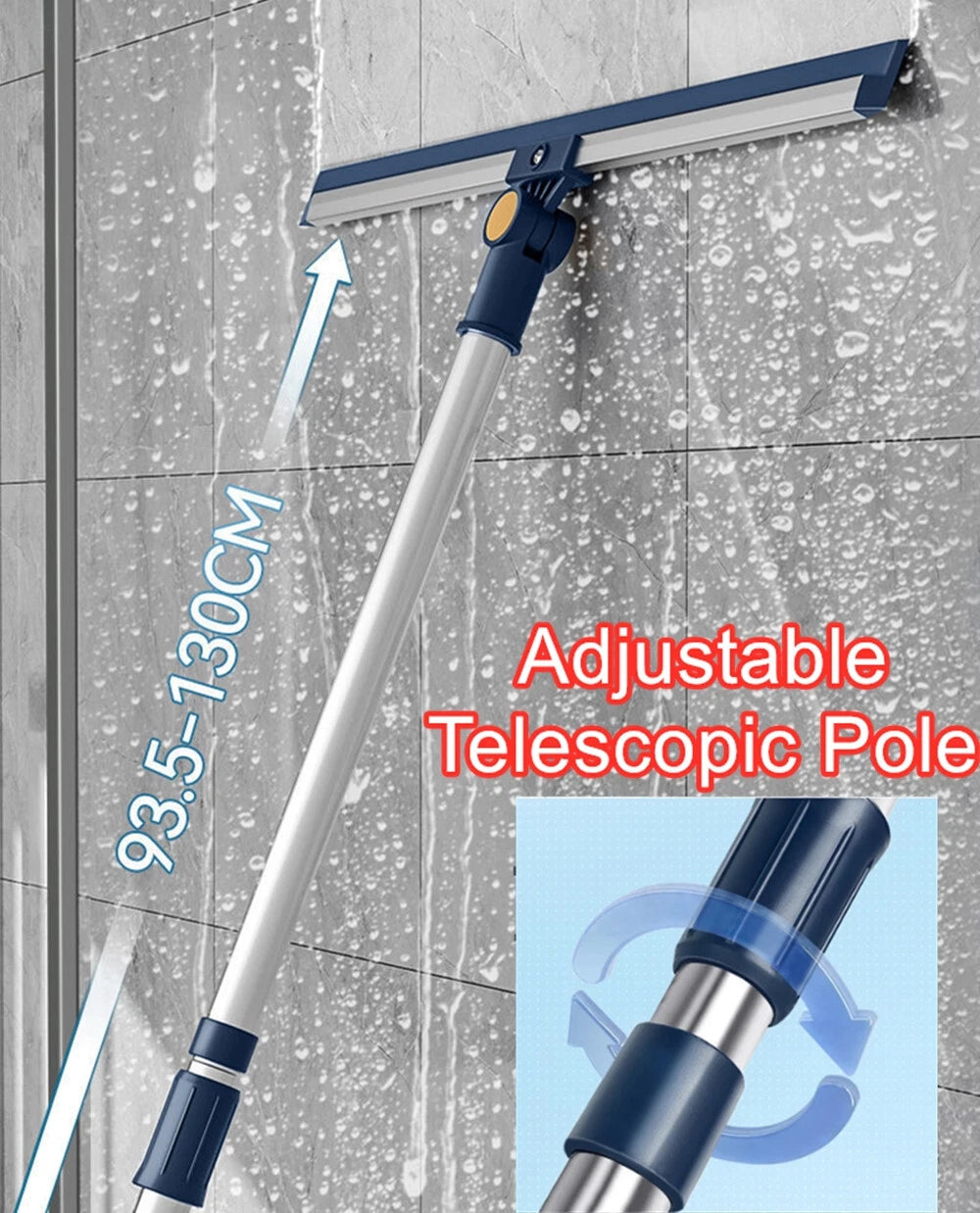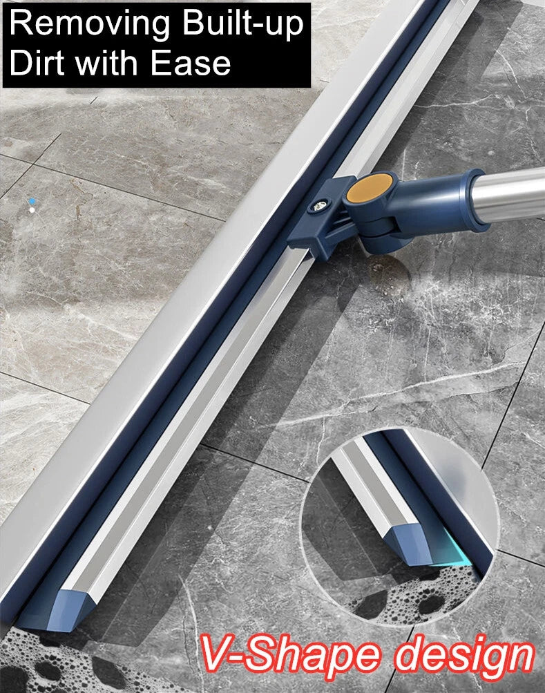 This floor squeegee is a practical and convenient cleaning tool designed to simplify your daily cleaning tasks. It comes with an adjustable telescopic pole and a flexible 180° head, allowing you to clean hard-to-reach areas with ease while reducing bending. Lightweight and easy to assemble, it suits multiple scenes—from bathrooms and swimming pools to garages and patios. It can effortlessly remove water and hair without scratching flooring or windows, and its easy-to-clean and space-saving design makes storage a breeze.