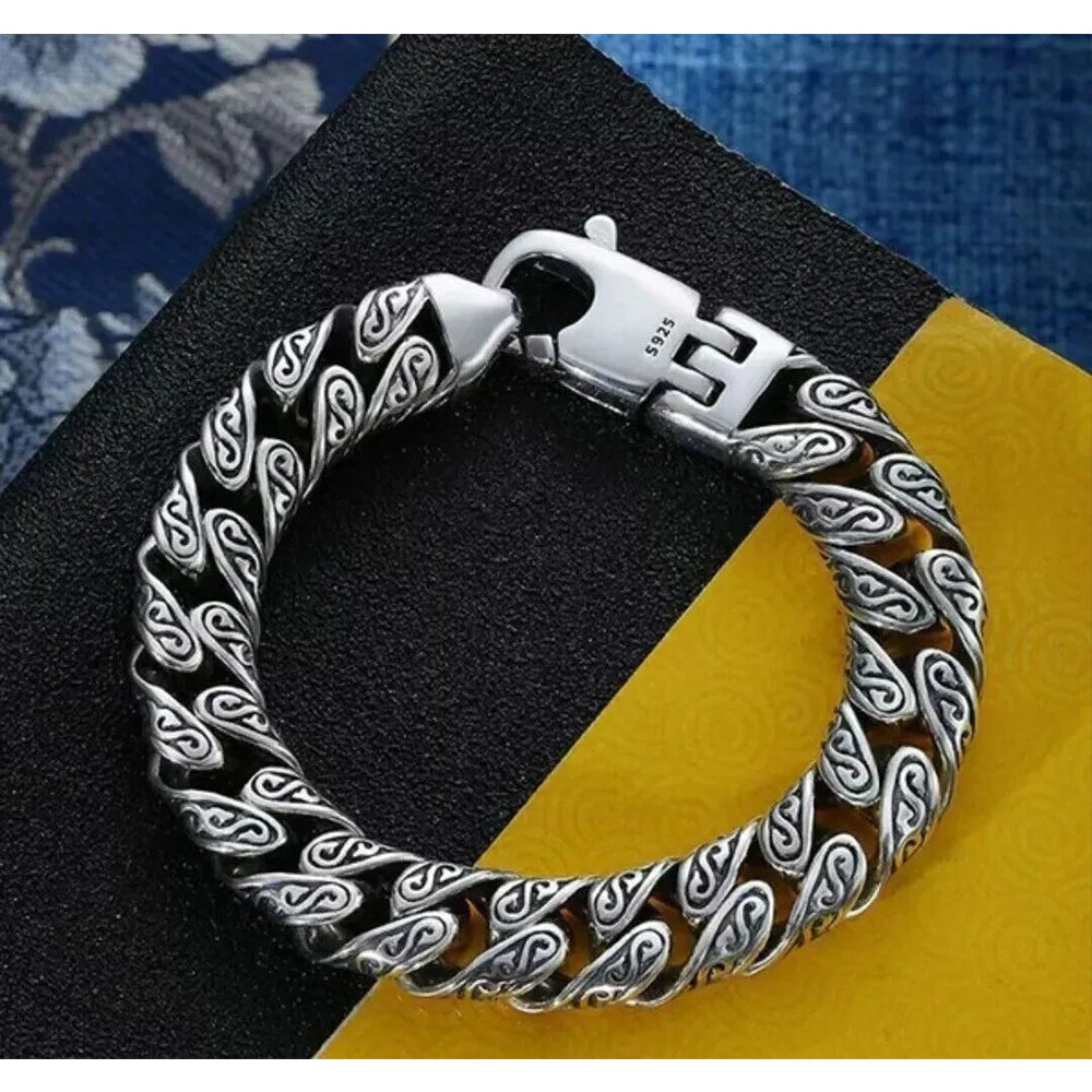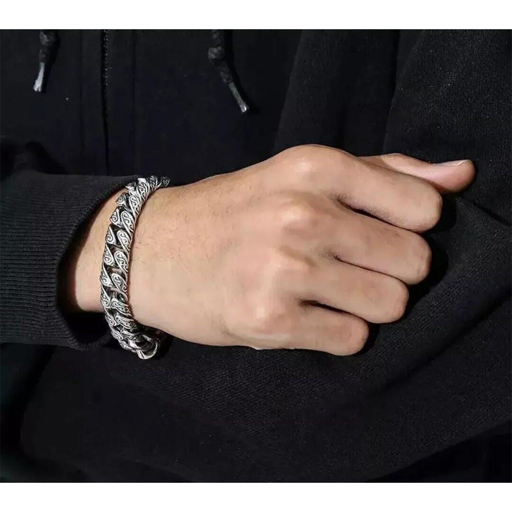Men's Solid 316L Engraved Stainless Steel Braided Cuban Bracelet Jewellery Gift 22 cm