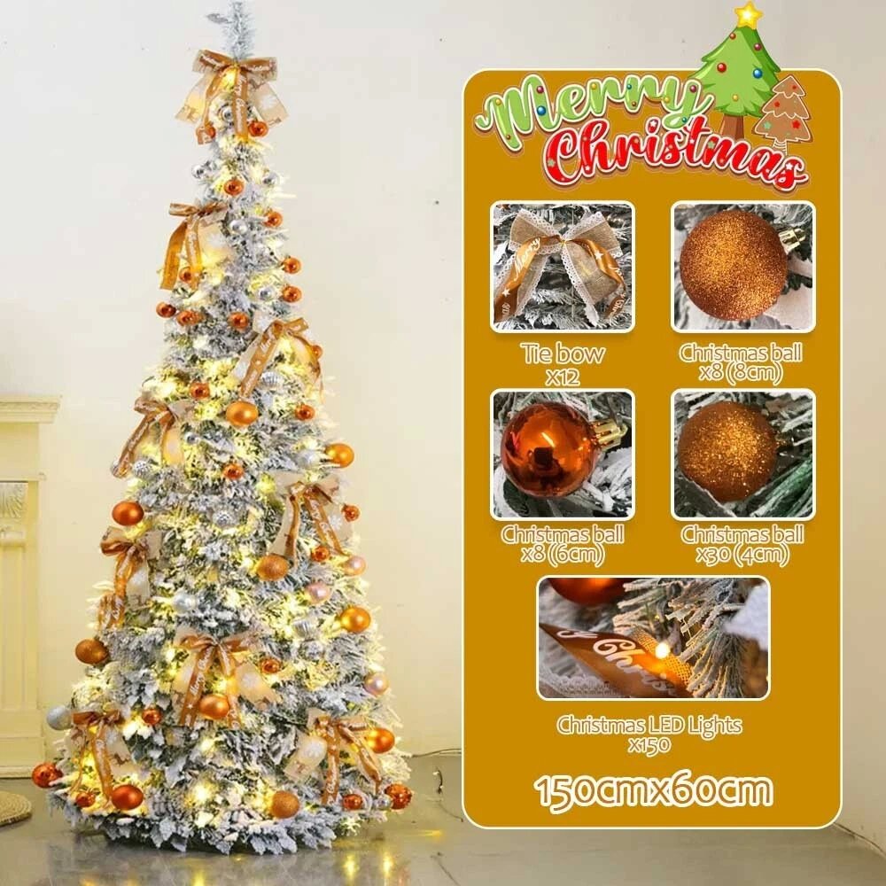 - 1 Pop-Up Christmas Tree of the corresponding size (pre-installed with the corresponding number of warm white LED lights and decorative accessories: bows, Christmas balls of different sizes)