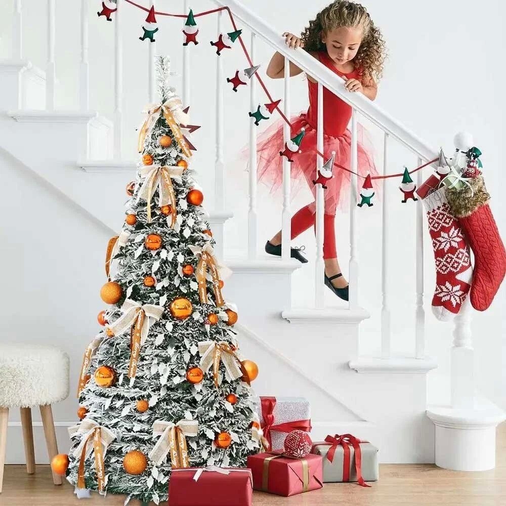 The Christmas tree is made of high-quality flame-retardant materials, which is not only safe and reliable but also durable. The cross-shaped ABS plastic base has stable load-bearing capacity and can effectively prevent tipping. Whether you are decorating the living room, bedroom, corridor of your home, office, supermarket entrance, or creating a scene for a Christmas party or wedding, this multi-functional Christmas tree is perfectly suitable for various indoor and outdoor scenarios. It adopts a foldable design, making the assembly process easy and simple (no additional tools required), and storage is also very convenient—after the holidays, you only need to disassemble the tree body and put it back into the original packaging box for proper storage, and it will be ready to shine again next year.