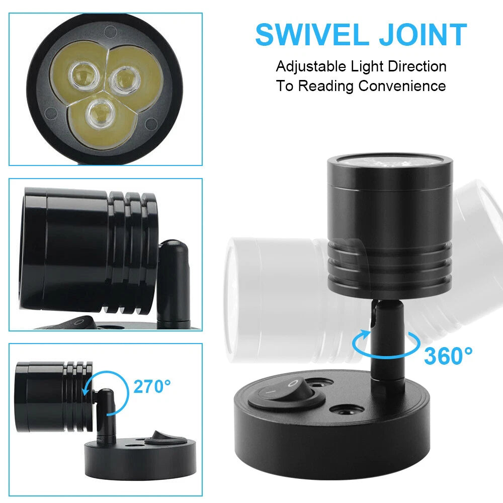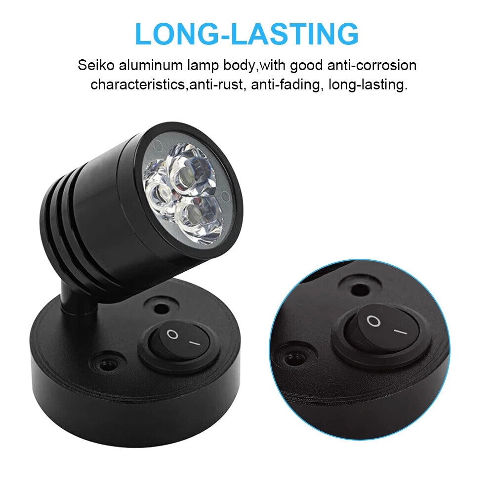 2X LED Swivel Reading Light 12V Campervan Caravan Boat Interior Wall Spot Lamp