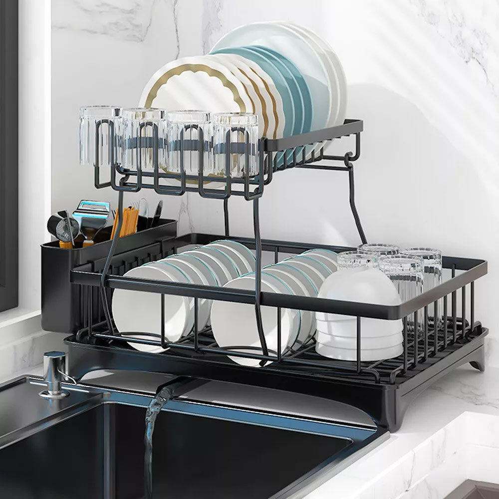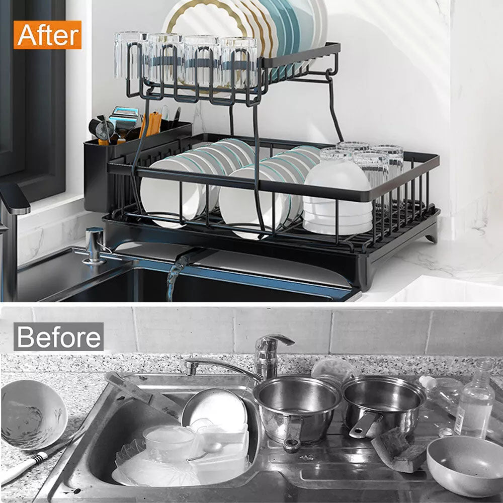 2 Tier Dish Rack Drying Cup Holder Drainer Storage Plate Tray Kitchen Organiser