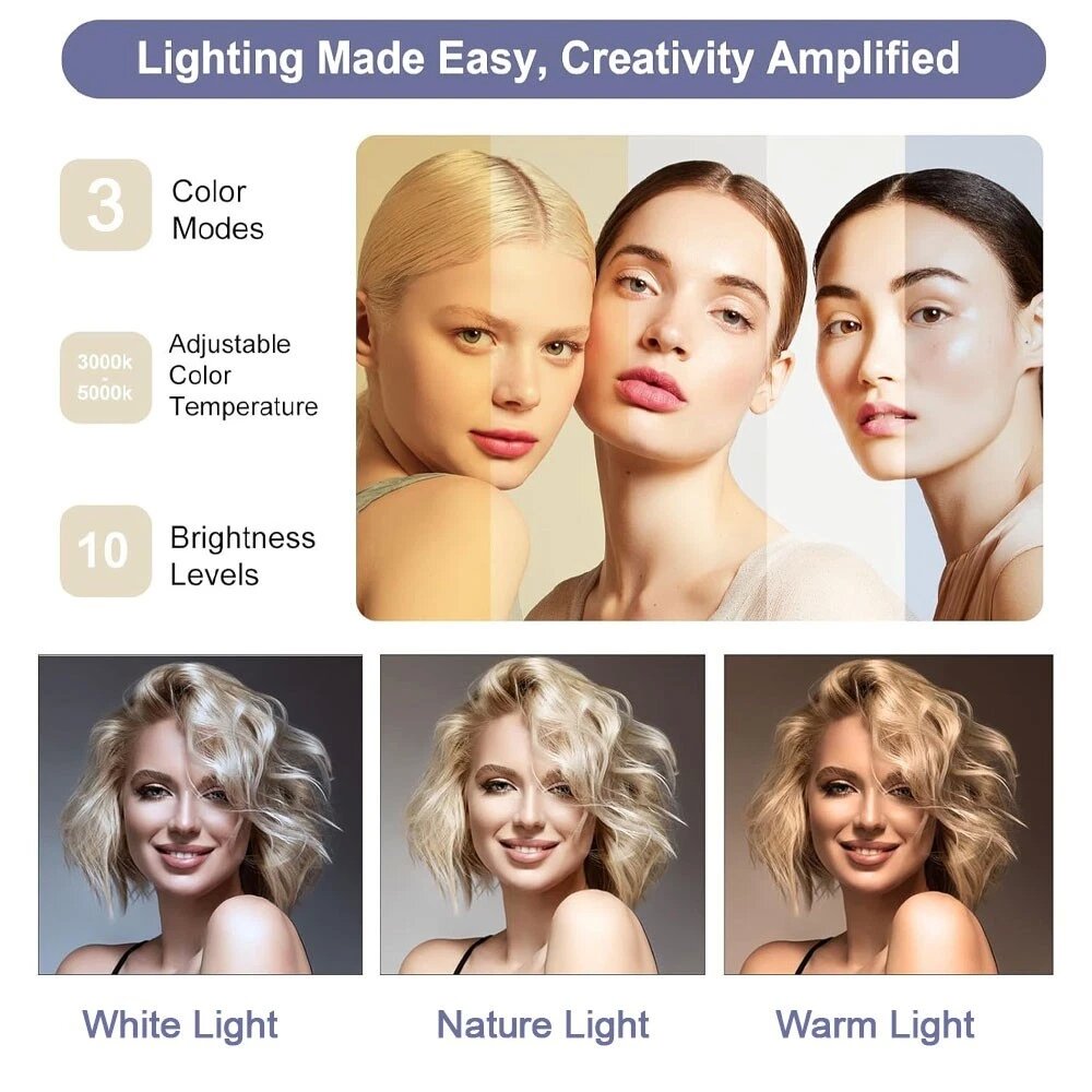 Dimmable Ring Light: The 10 - inch Ring Light boasts 3 light colors (white light, warm light, nature light) and a stepless adjustment range from 0% to 100%. You can pick any setting in between to get that perfect lighting for your specific needs.