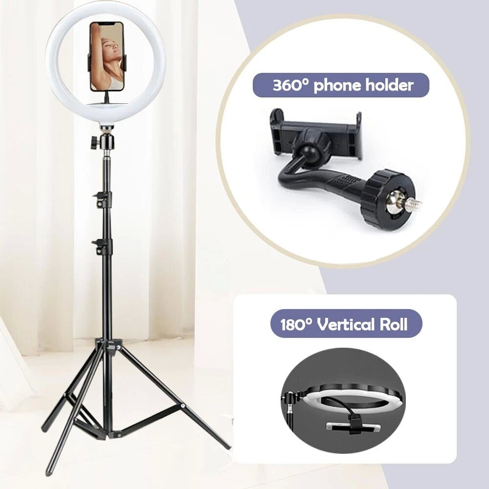 This professional 10 - inch Dimmable LED Ring Light with Stand is the ultimate lighting solution for all your live streaming needs. But its usefulness doesn't stop there - it's a versatile tool that comes in handy whenever you require extra light. Whether you're doing makeup, taking photos, shooting videos, reading books, doing nail art, or engaging in live streaming, this ring light has got you covered.