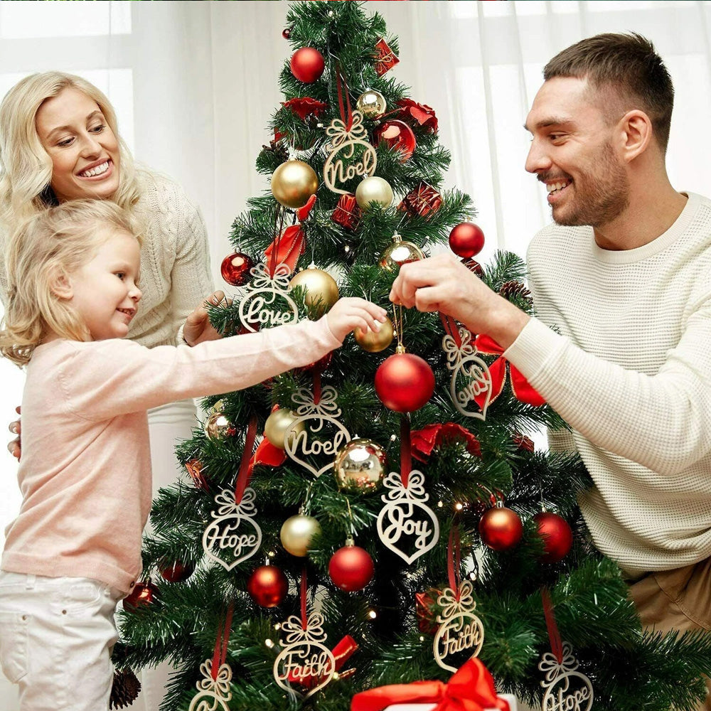 36PCS Xmas Tree Love Heart Wooden Hollow Shapes Pendant Decoration Xmas Gift