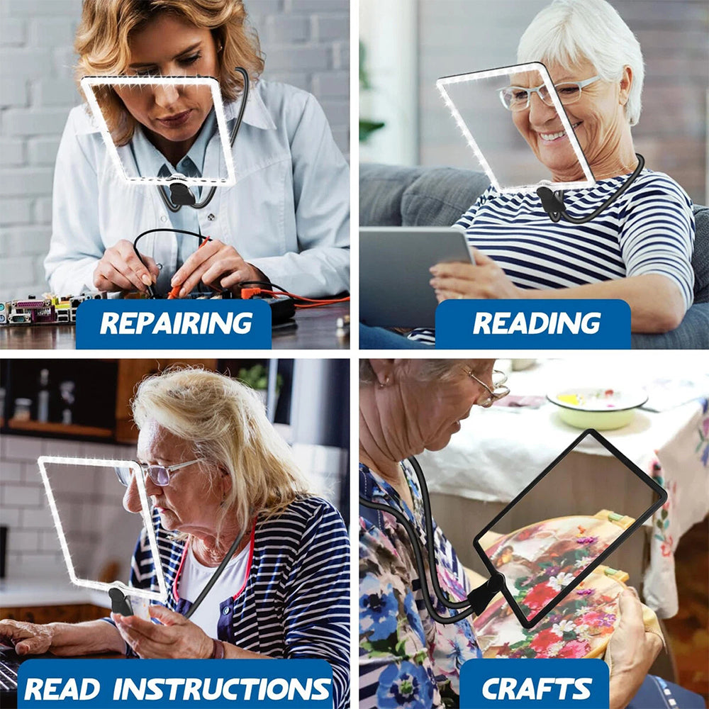 5X Hands Free Magnifying Glass with LED Light, Neck Cord for Reading, Sewing