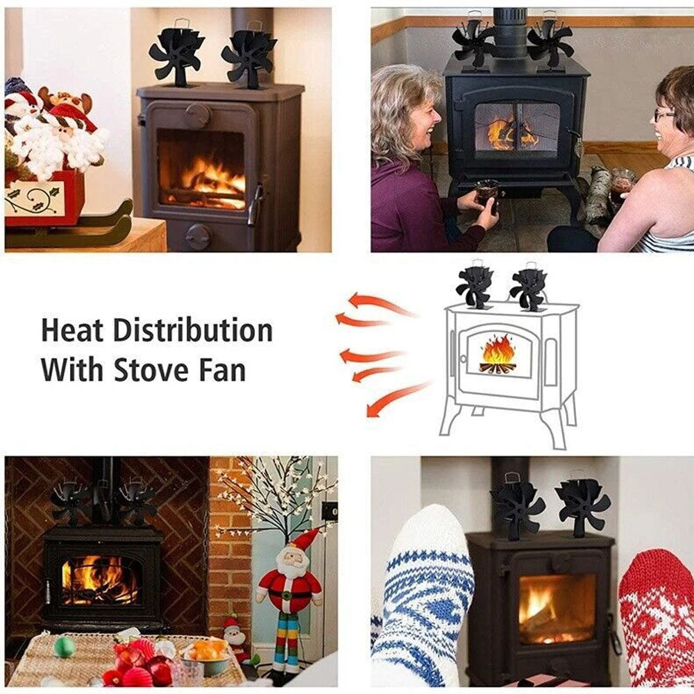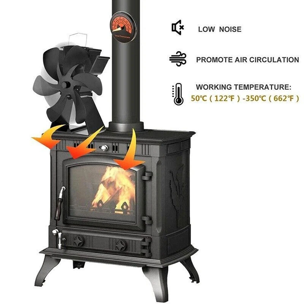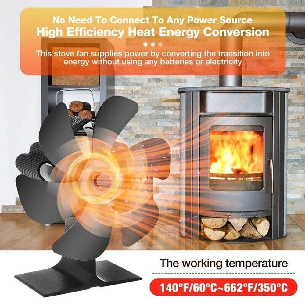 6 Blades Fireplace Stove Fan Heat Cocoon Self-Powered Wood Top Burner Eco Heater