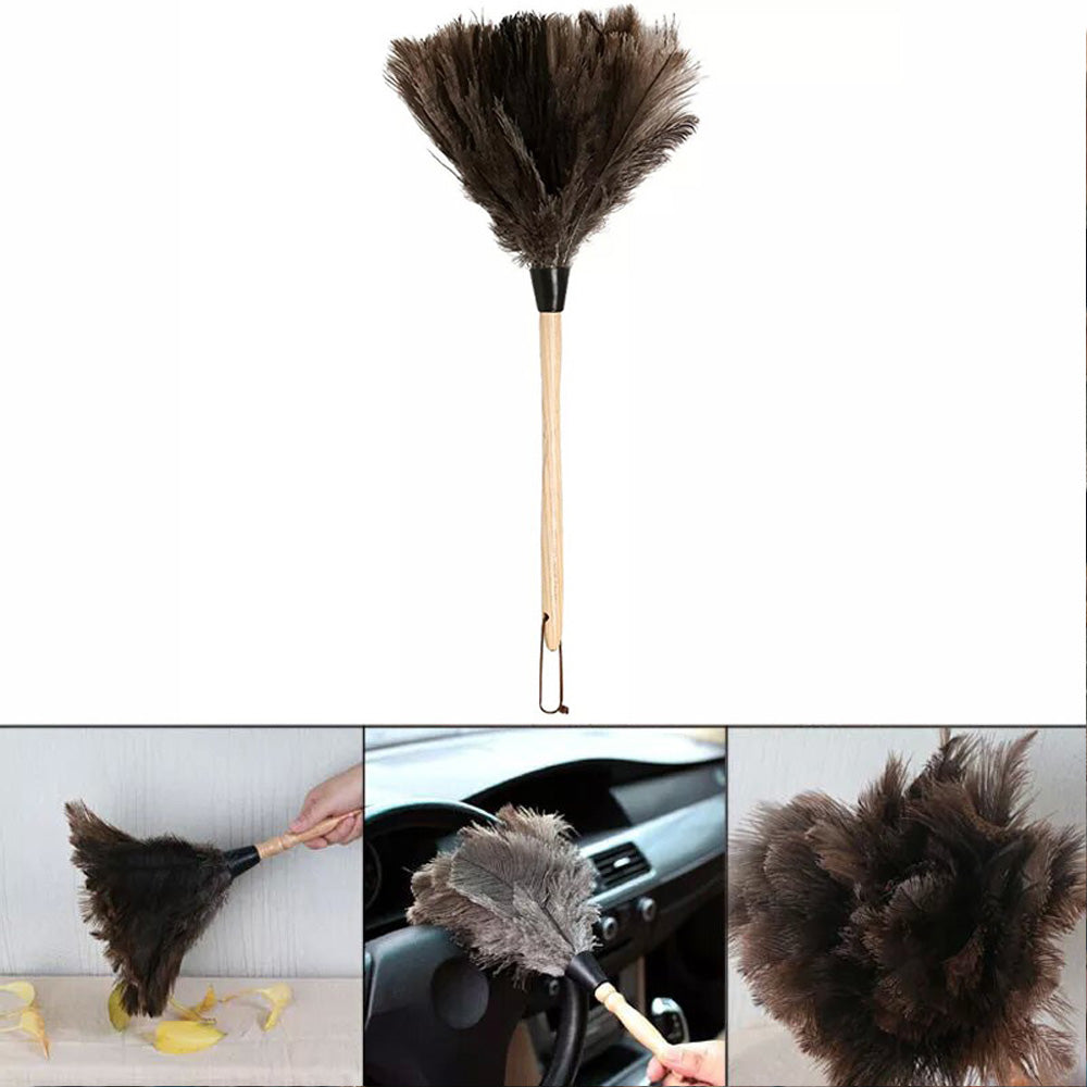 Anti-Static Ostrich Feather Duster Wooden Handle Brush Duster Dust Cleaning Tool