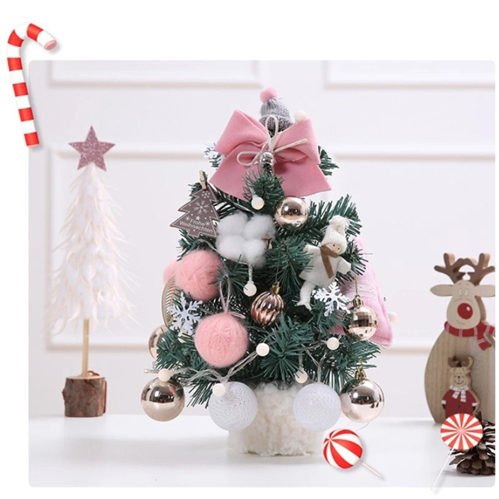 Artificial Christmas Decoration Tree LED Light Table Desk Ornaments Gift Party 30CM Luxury Pink