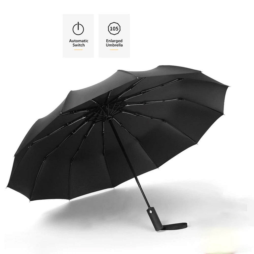 Automatic Folding Umbrella Auto Open Close Travel Windproof Anti-UV with 12 Ribs Black