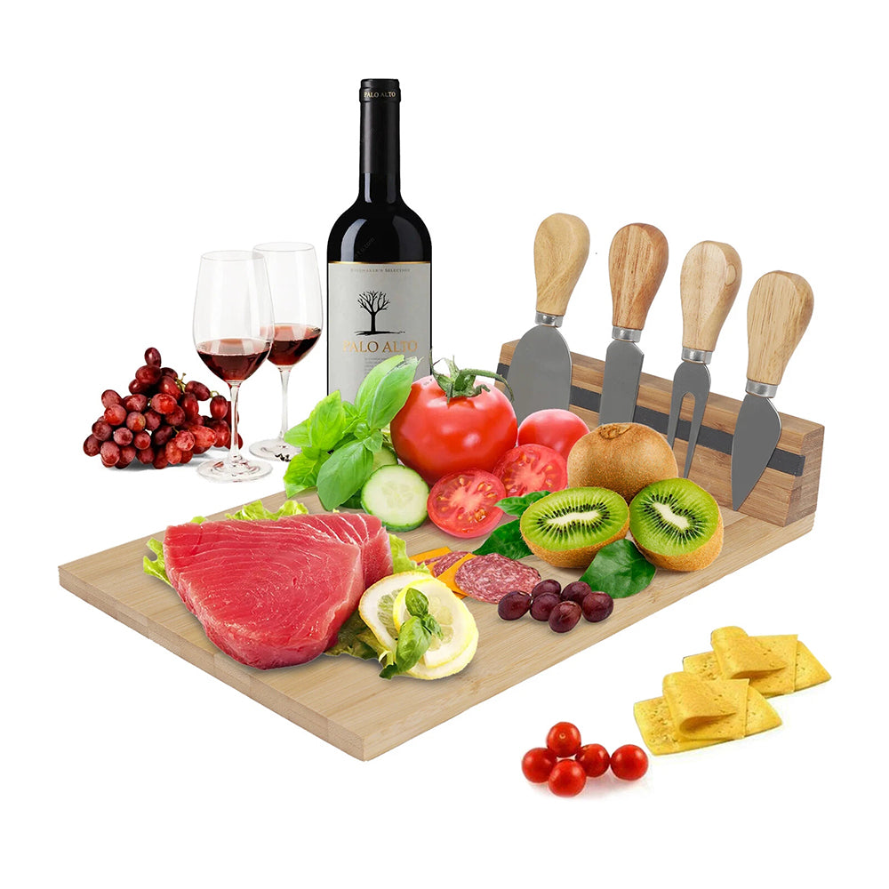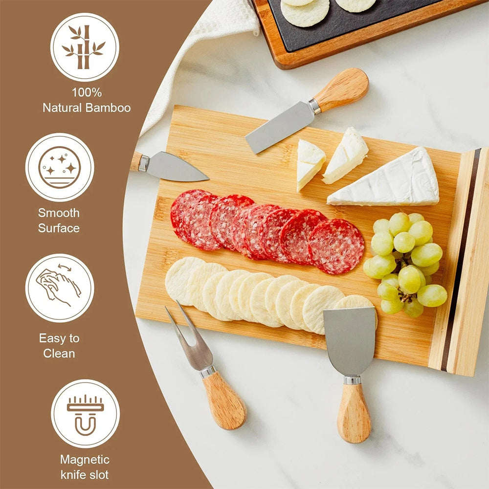 Bamboo Cheese Cutting Board & Knife Set Wooden Serving Boards & Cheese Knives