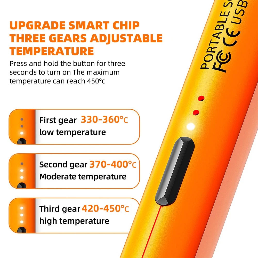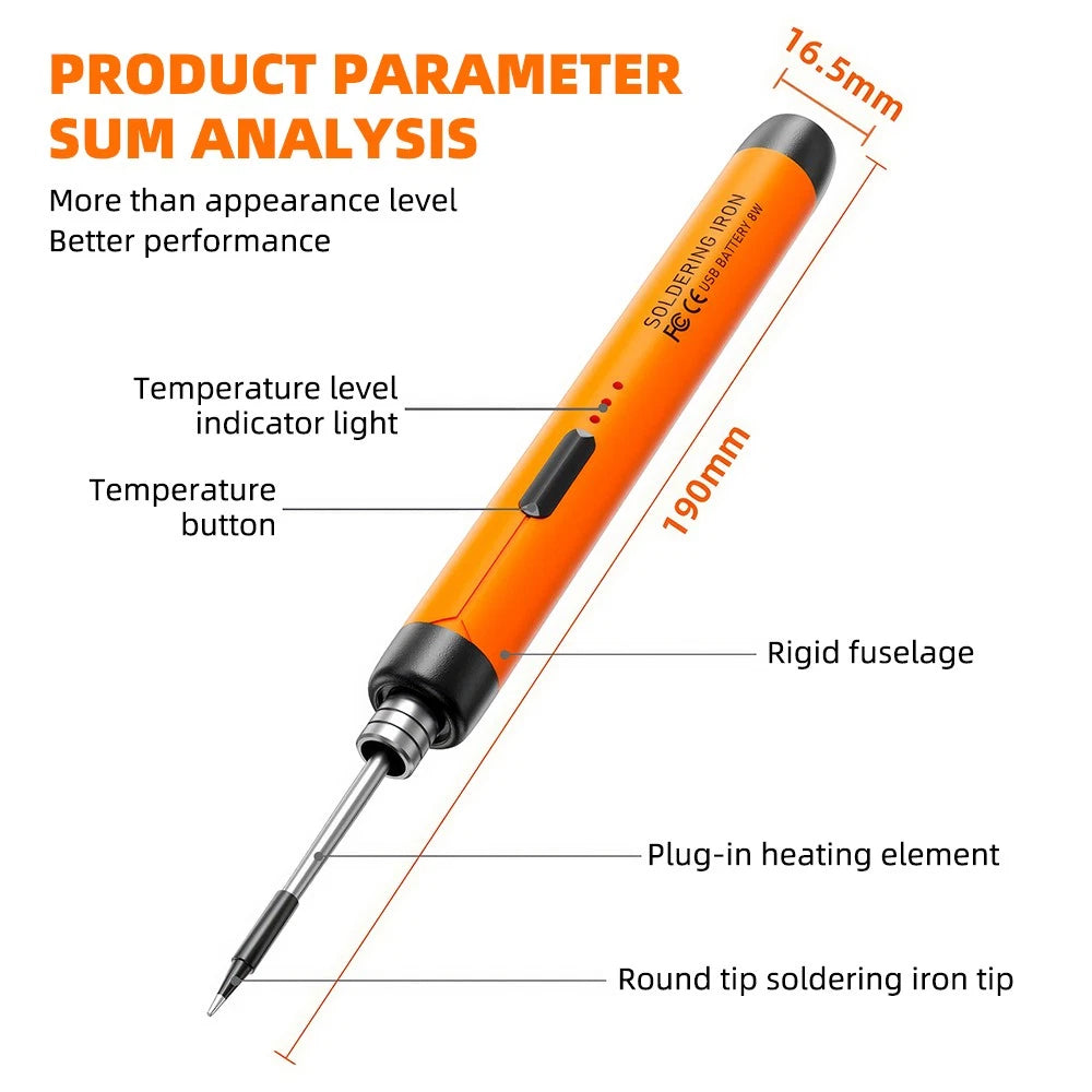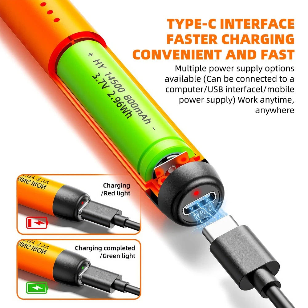 - Innovative Wireless Design: The USB Soldering Iron operates without the hassle of cords. Powered by a built-in rechargeable lithium-ion battery, it allows for freedom of movement and flexibility while working on various projects.