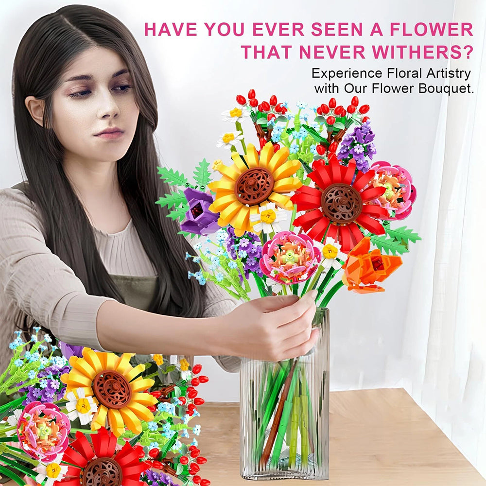 Flower Bouquet Plants Building Blocks Mini Bricks Artificial Creative Decoration
