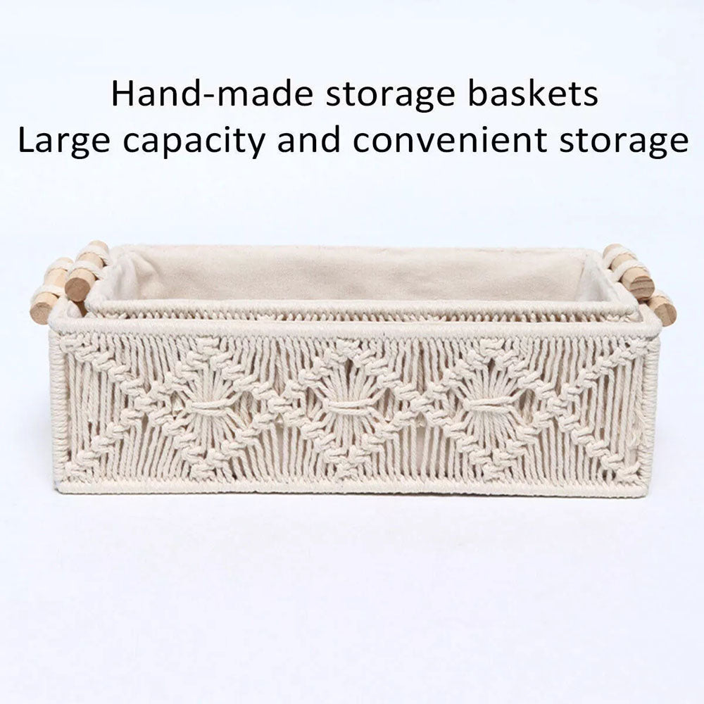 Hand Woven Square Storage Basket Desktop Organizer for Cosmetics Snack Office (Large)
