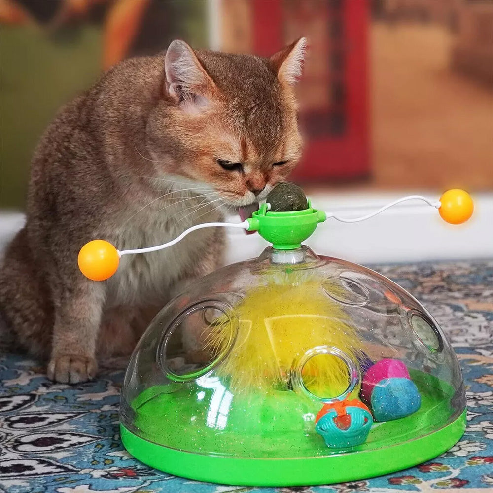 Interactive Windmill Cat Teaser Toy Treasure Box with Stick Fun Play for Pets