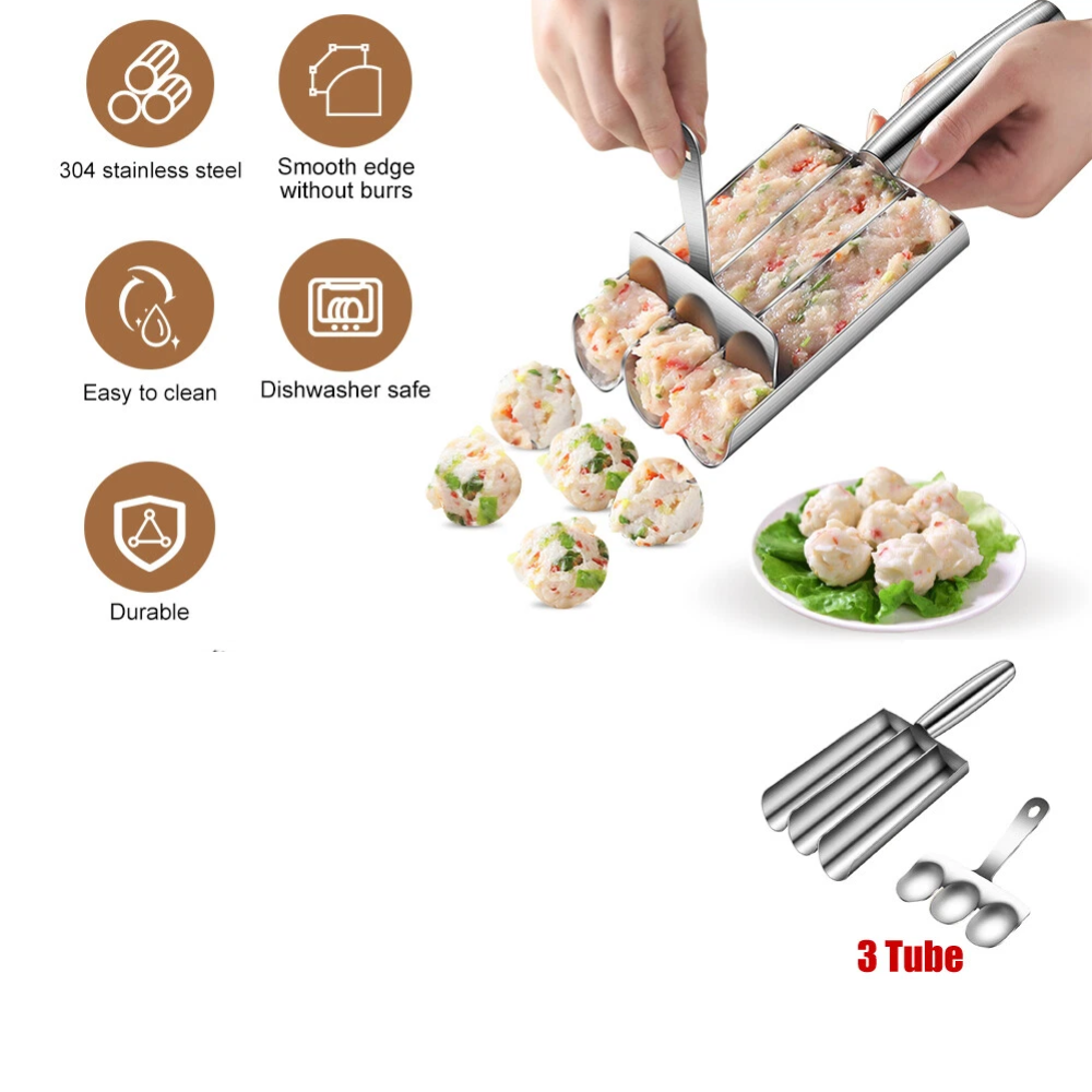 Kitchen Triple Meatball Maker, 304 Stainless Steel Meat Baller Maker Mold Spoon