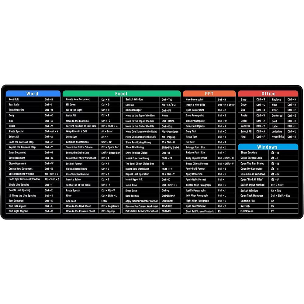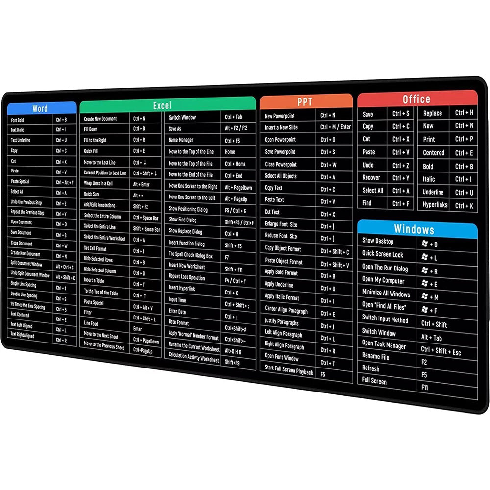 Large Size Mouse Pad Word/Excel/Power Point Shortcut Keys Desk Pad Mat Non Slip