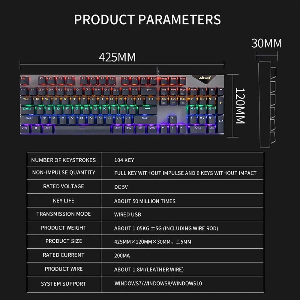 LED Gaming Mechanical Keyboard RGB Backlit USB Wired 104 Keys Blue Switch For PC