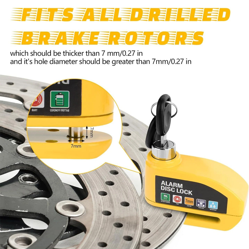 - Wide Compatibility: Suitable for all vehicles with disc brakes, including motorcycles, mopeds, bikes, and e-bikes. The lock pin measures 7mm, ensuring compatibility with most vehicles.