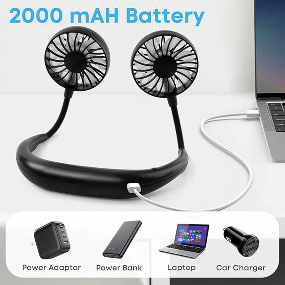 Neck Fan Headphone Design Wearable Portable USB Rechargeable Hand Free Personal