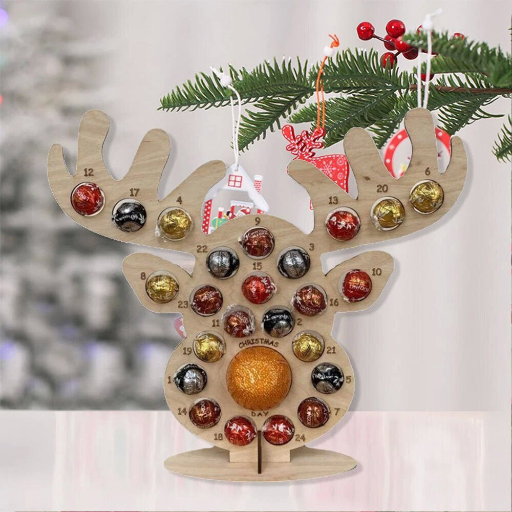 Party Elk Chocolate Holder Christmas Advent Calendar Wooden Frame
