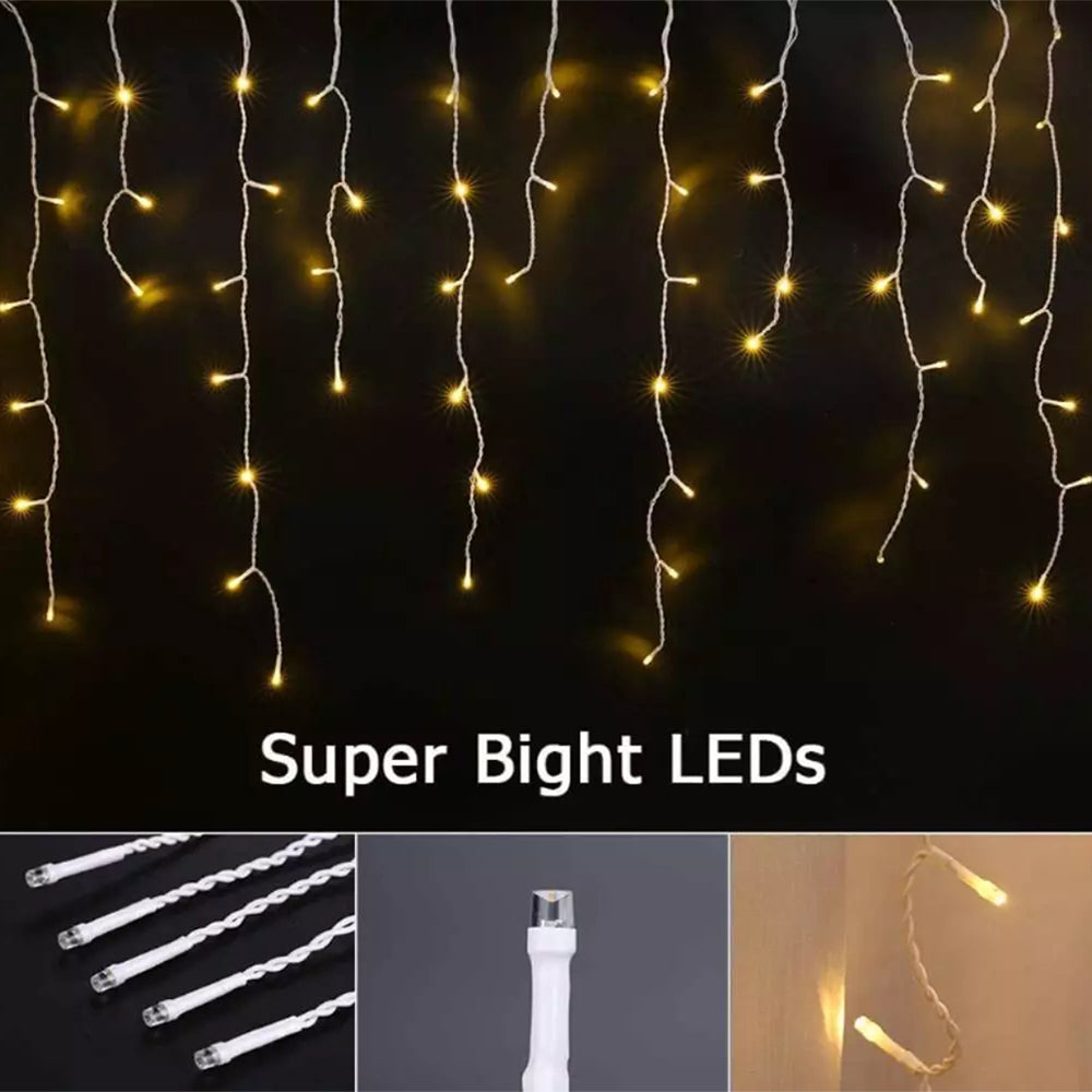 • Curtain Style Design: Lights hang in various lengths to create a cascading effect