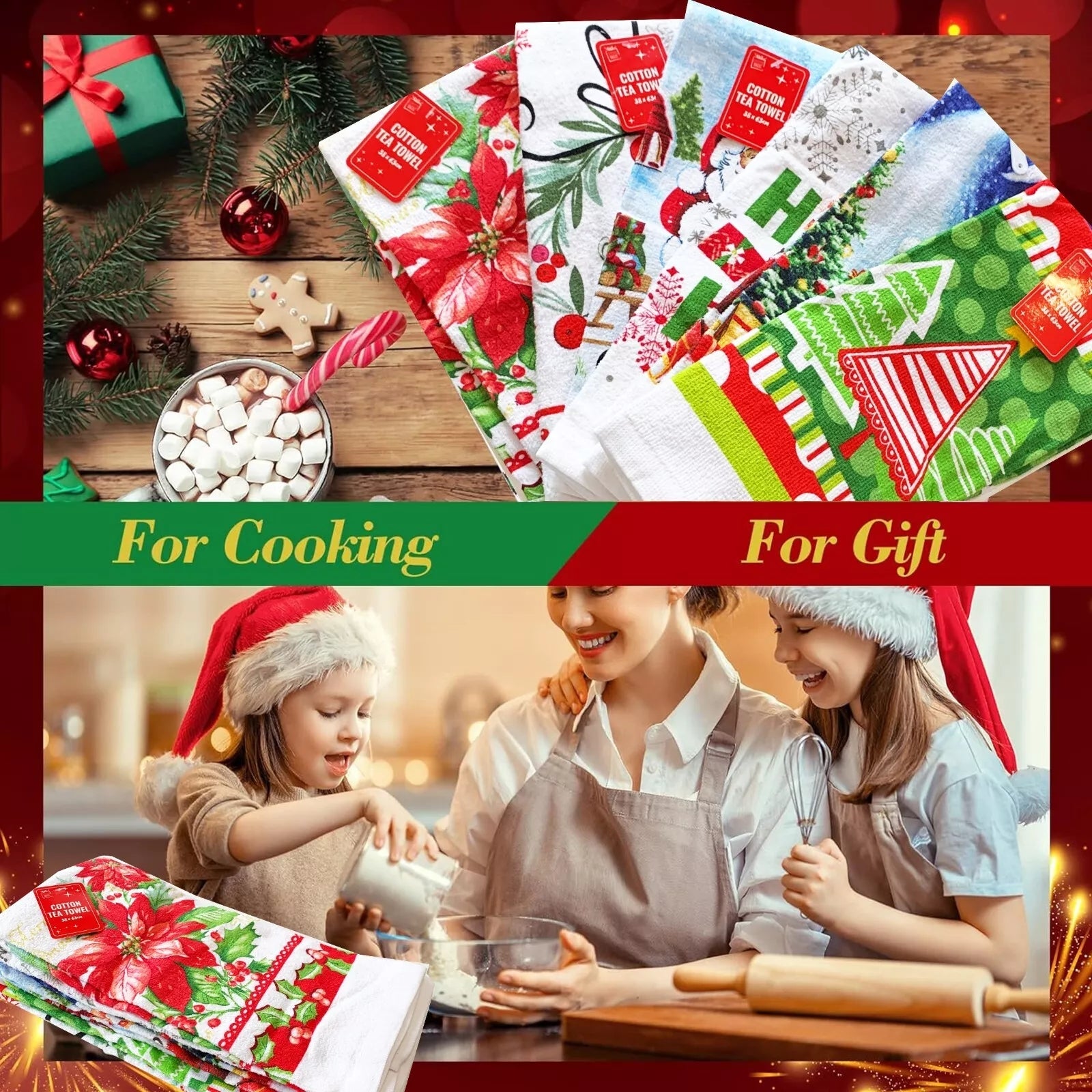 6pk Christmas Tea Towel Towels Teatowel Dishcloths 100% Cotton Kitchen Xmas